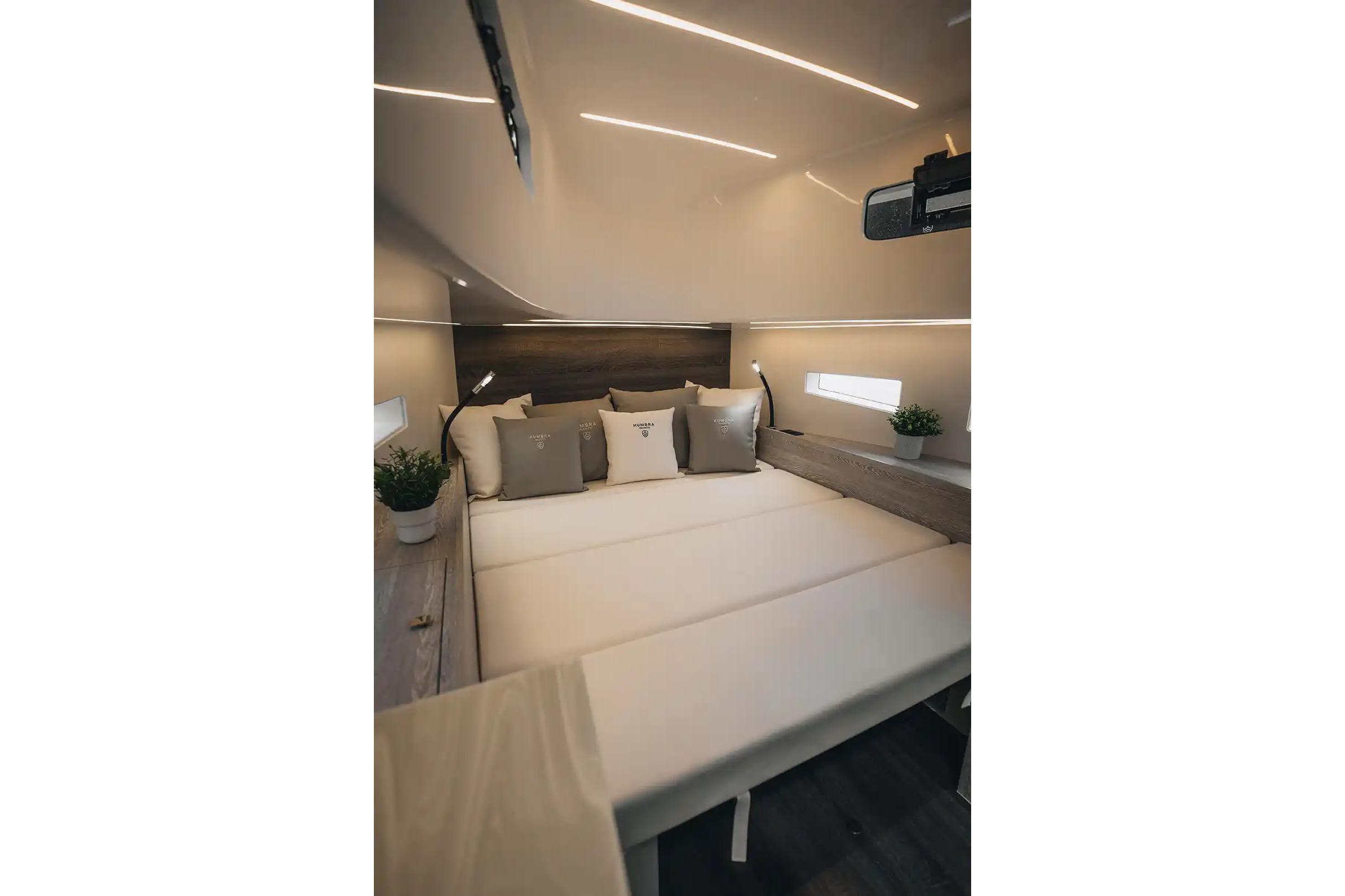 Interior sorprendentemente espaciosoBajo cubierta, la Kumbra 34 ofrece un interior luminoso y bien aprovechado: