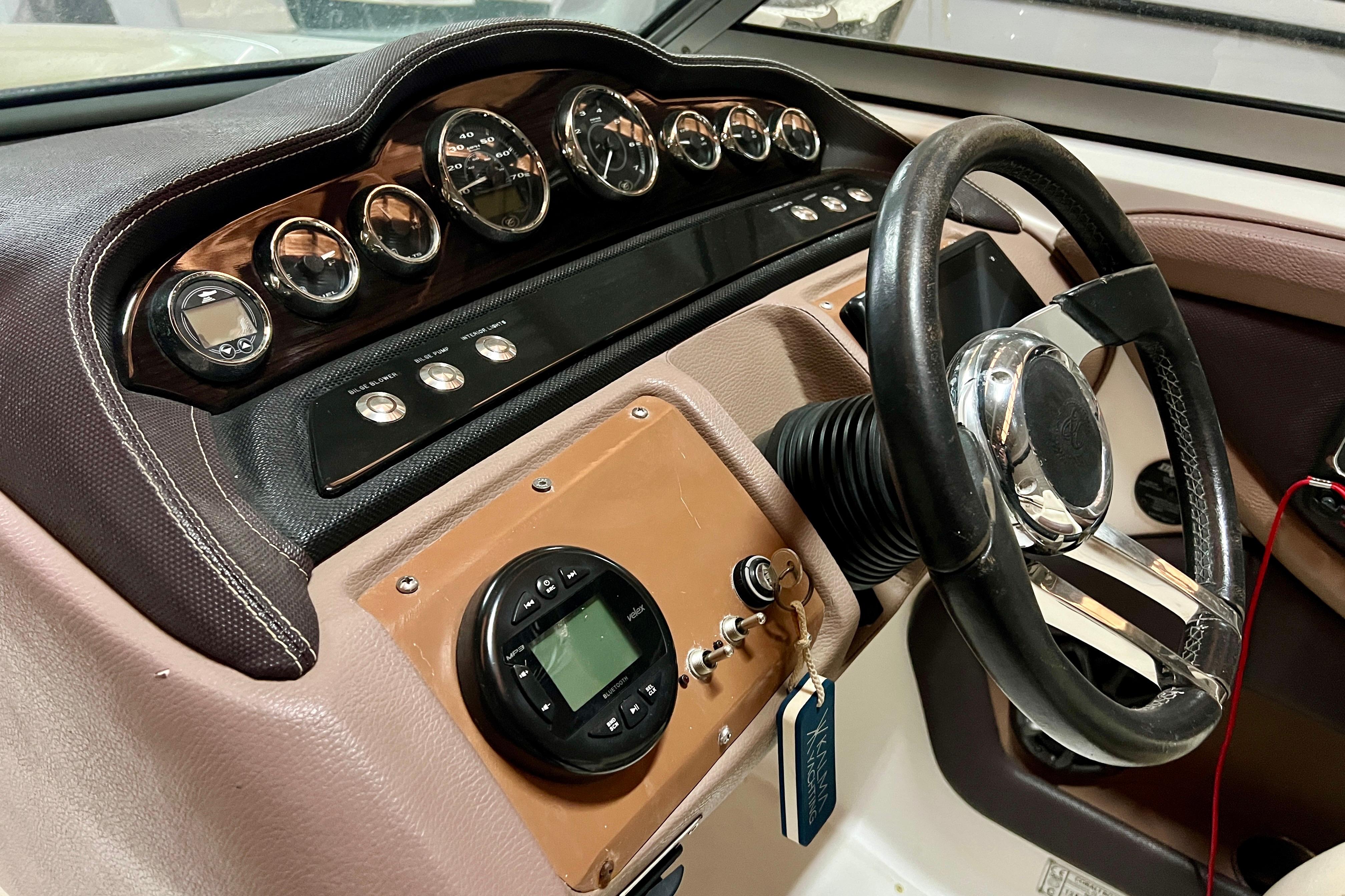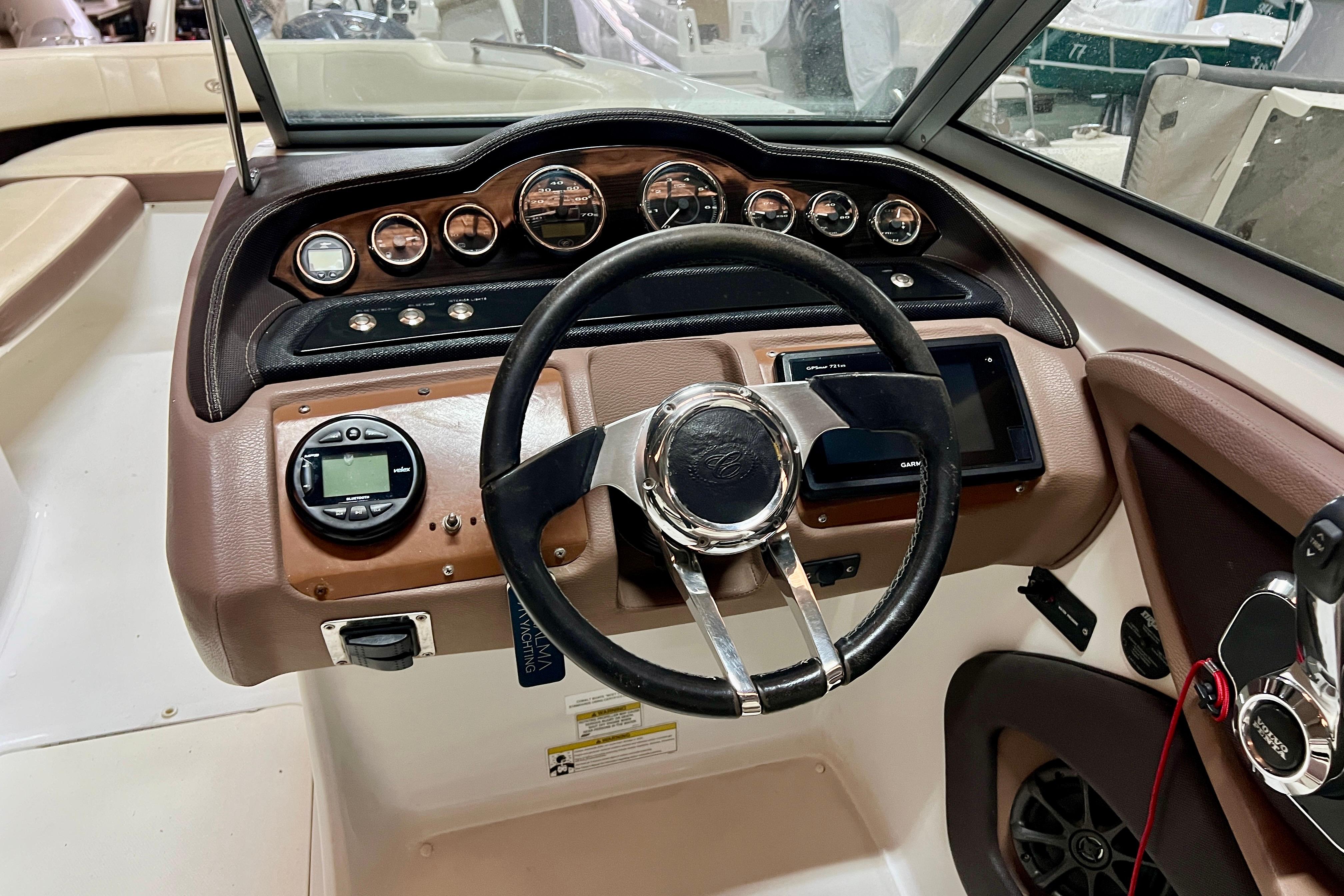 Impulsada por el fiable Volvo Penta V8-300 intraborda, esta unidad ofrece una navegación potente, estable y extremadamente suave, manteniendo consumos razonables para su categoría. El casco de Cobalt, conocido por su robustez y eficiencia, garantiza un comportamiento firme incluso con mar formada, ofreciendo seguridad y confort al timón.