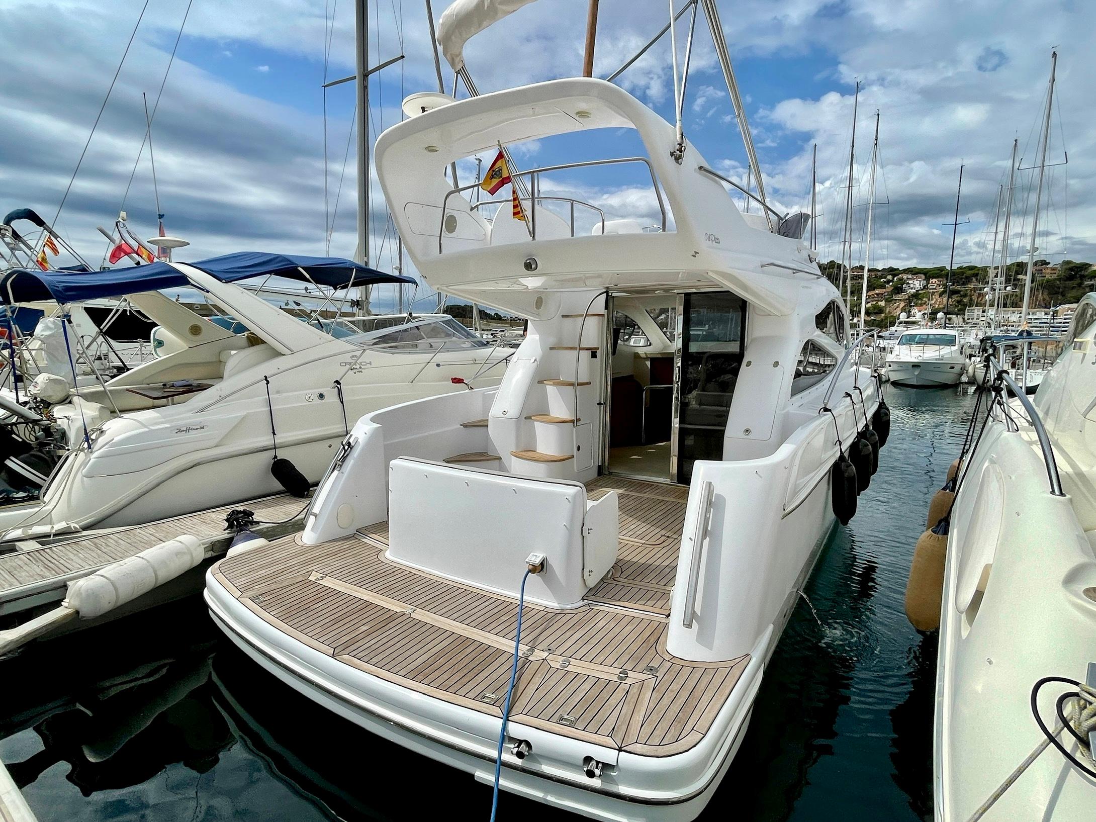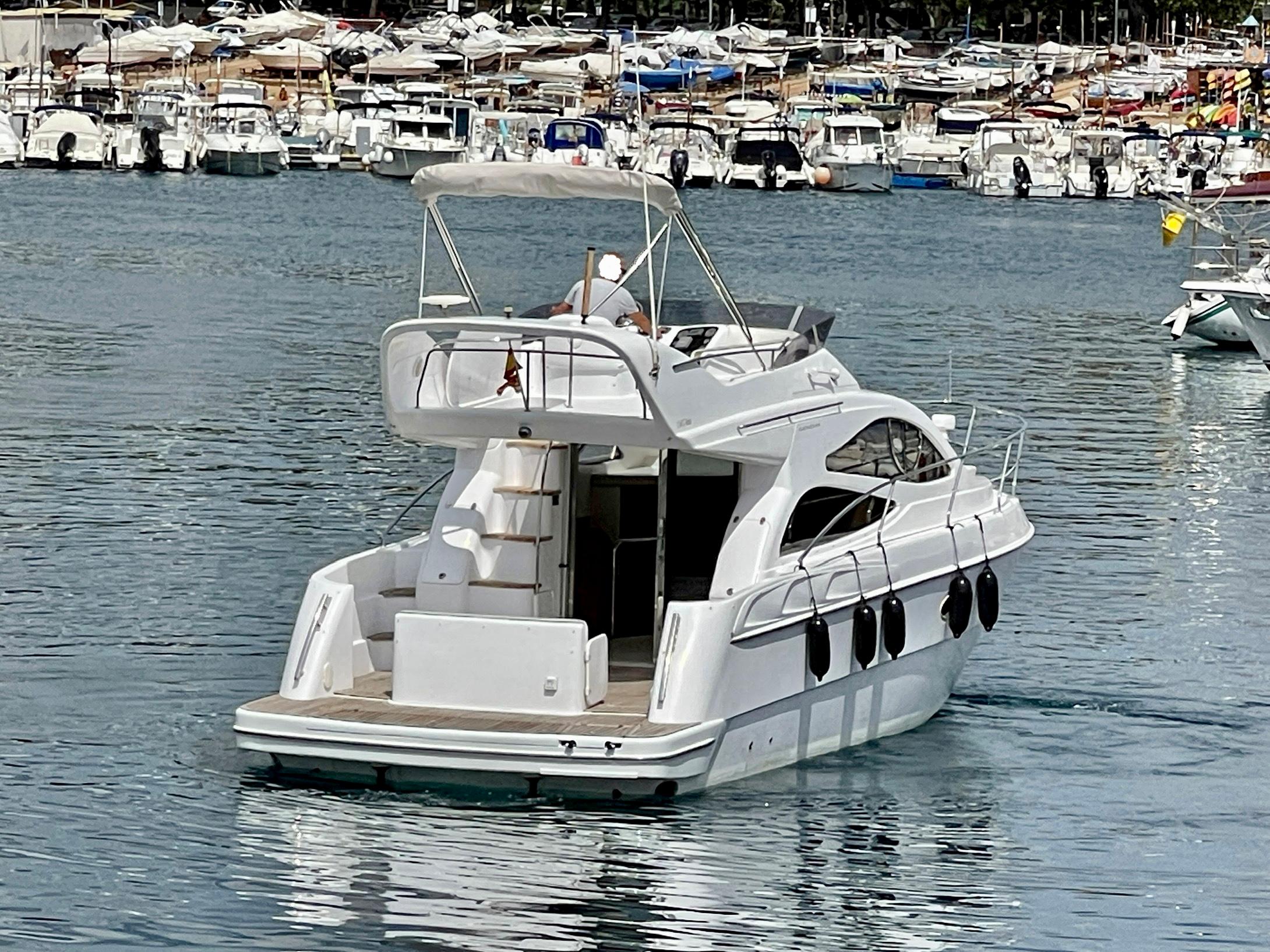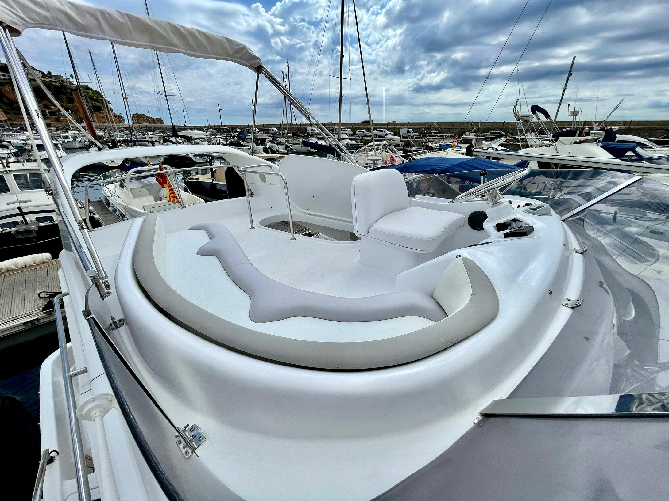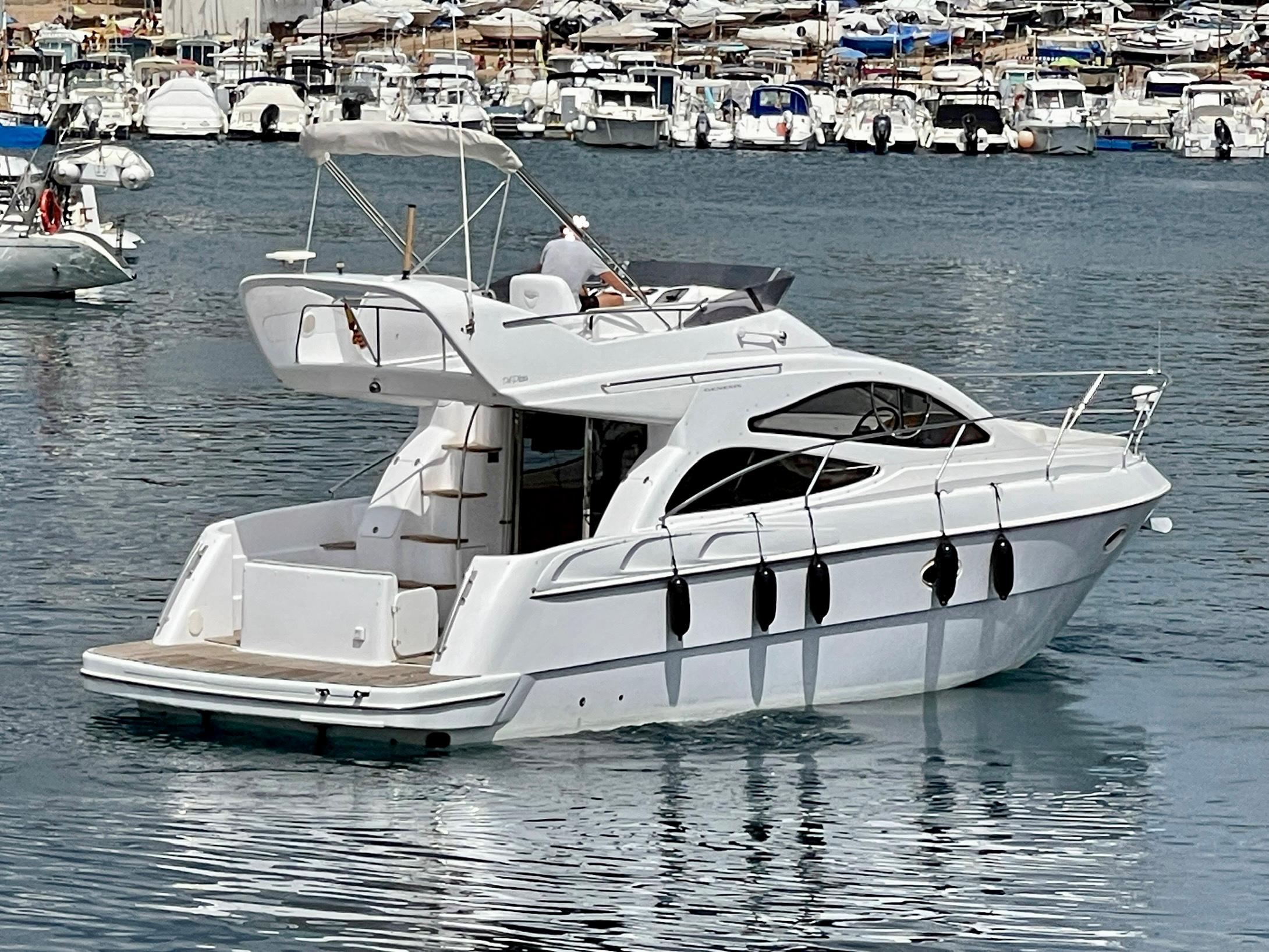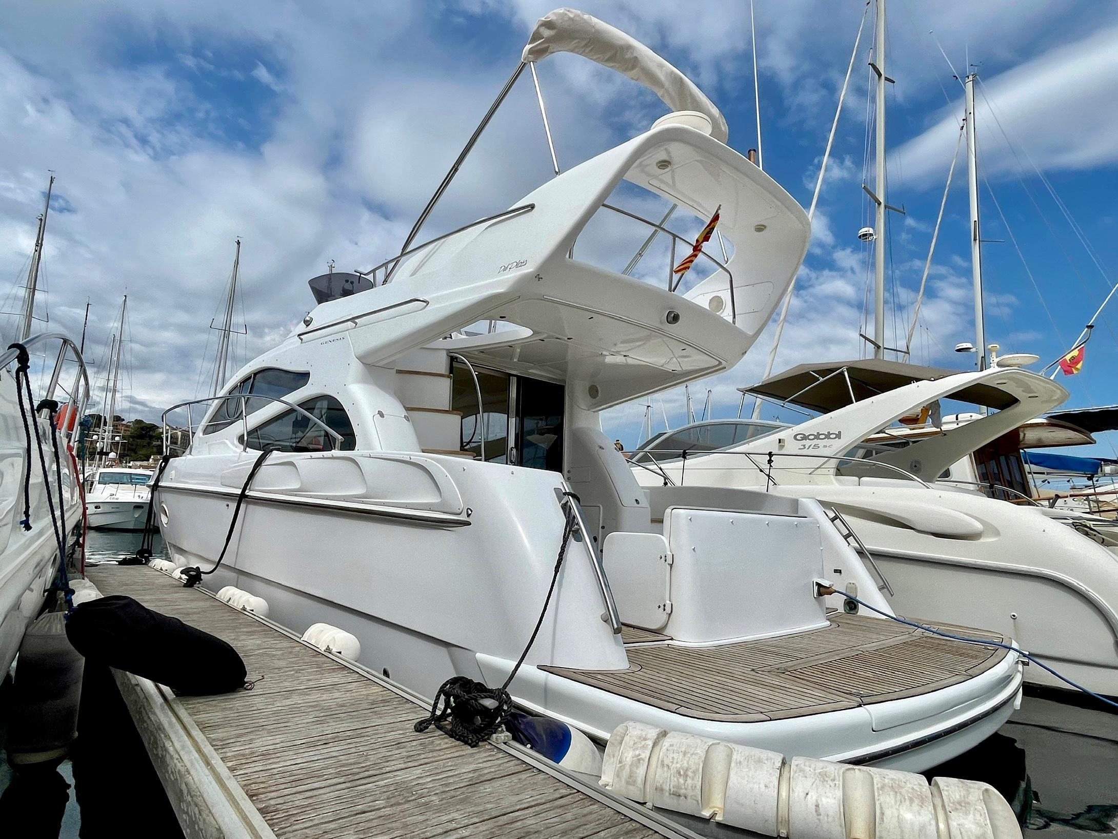 Embarcación del astillero Genesis del Plata, modelo 37 Fly del año 2007 equipado con dos motores Cummins 6BTA 5.9 diésel de 330 caballos cada uno y tan solo 520 horas de navegación. Barco en un estado inmejorable, muy bien equipado y cuidado al detalle por su propietario. Consta de dos camarotes y un baño, con cocina abierta en el puente principal con mucha luz natural.