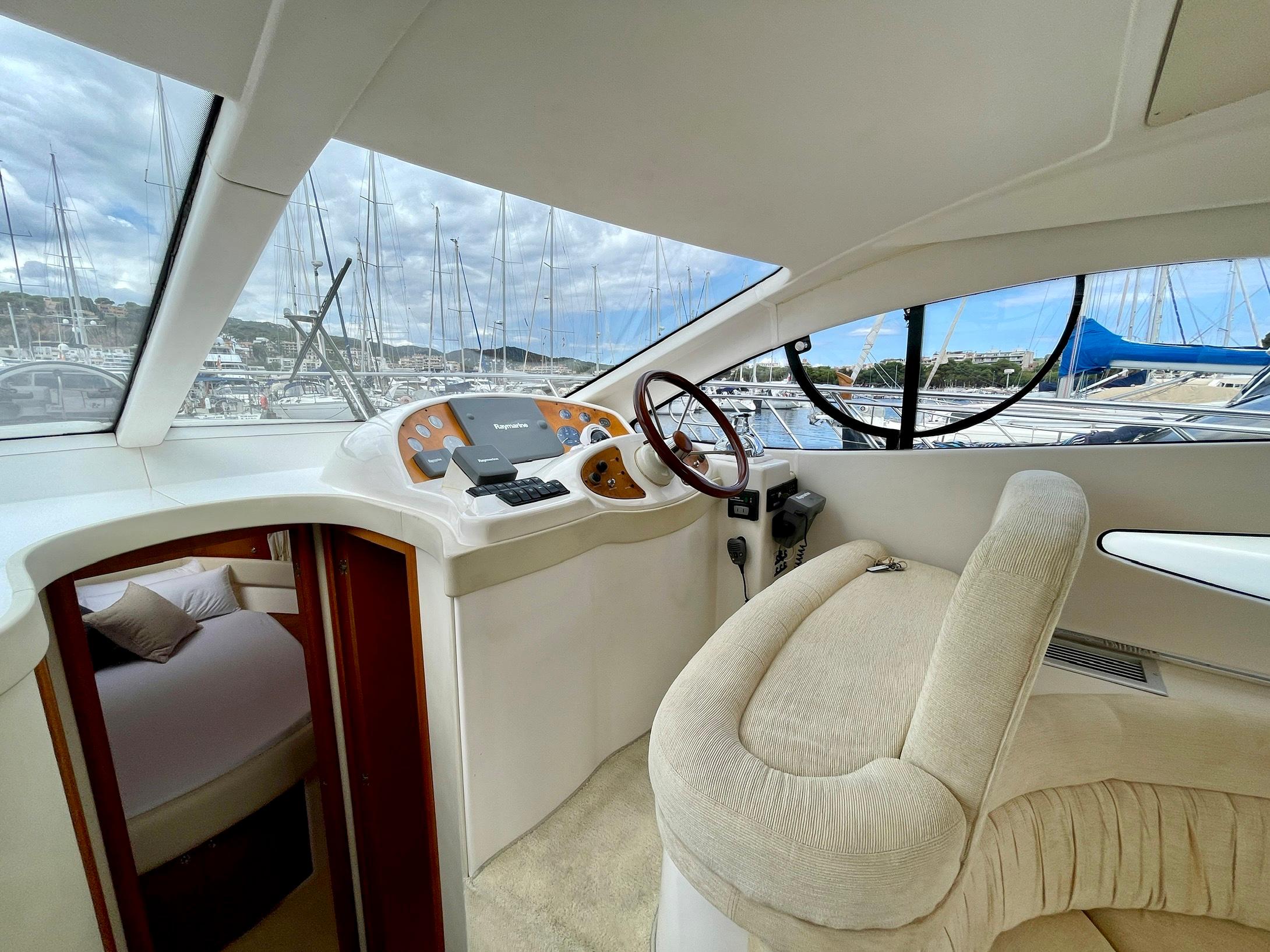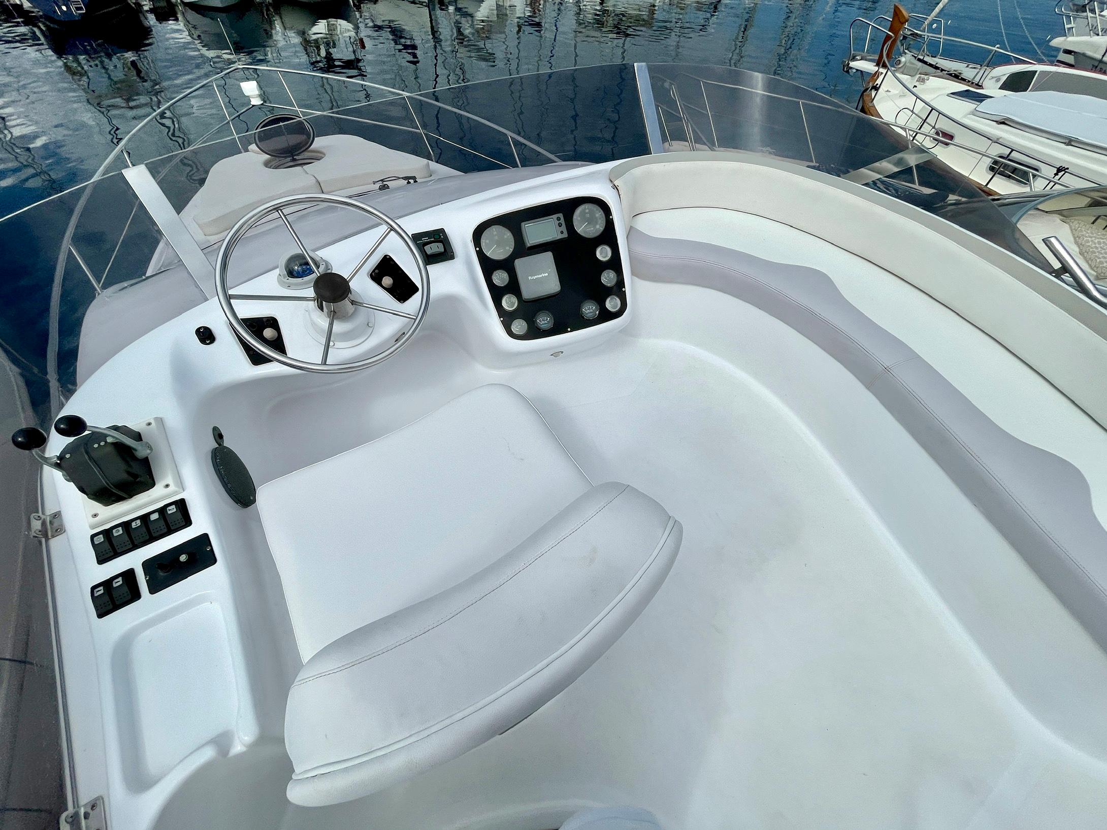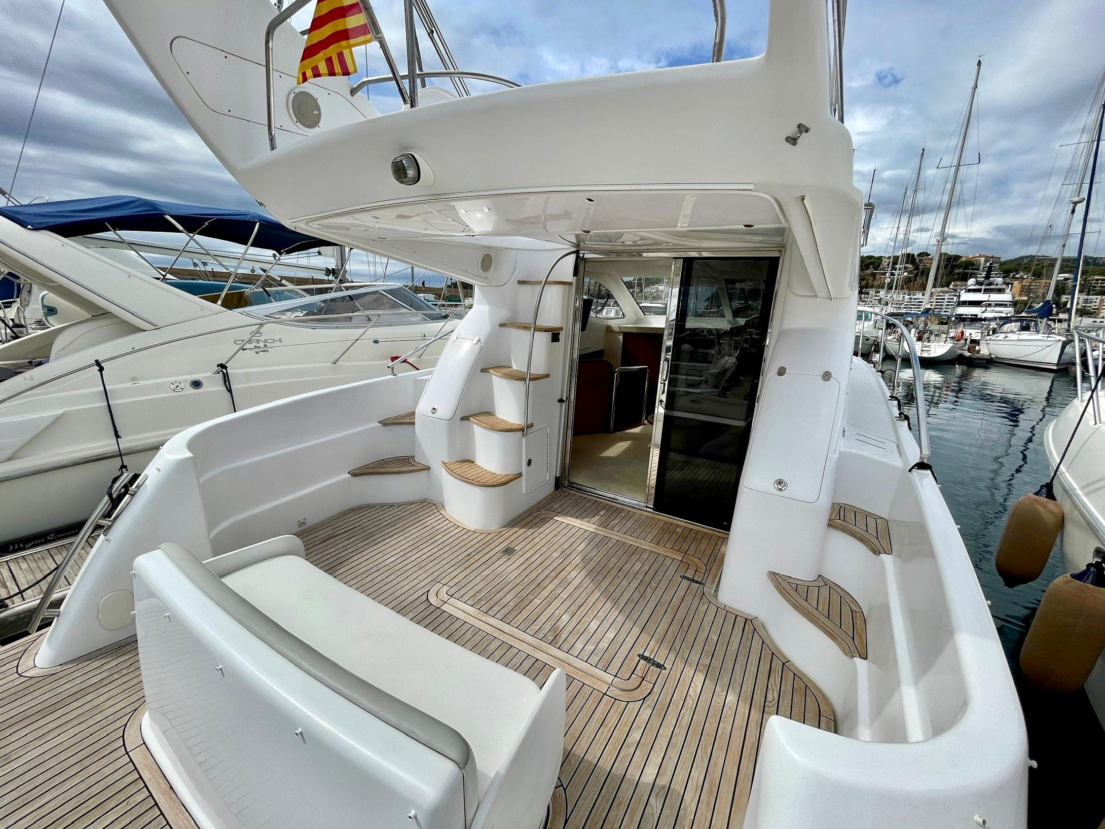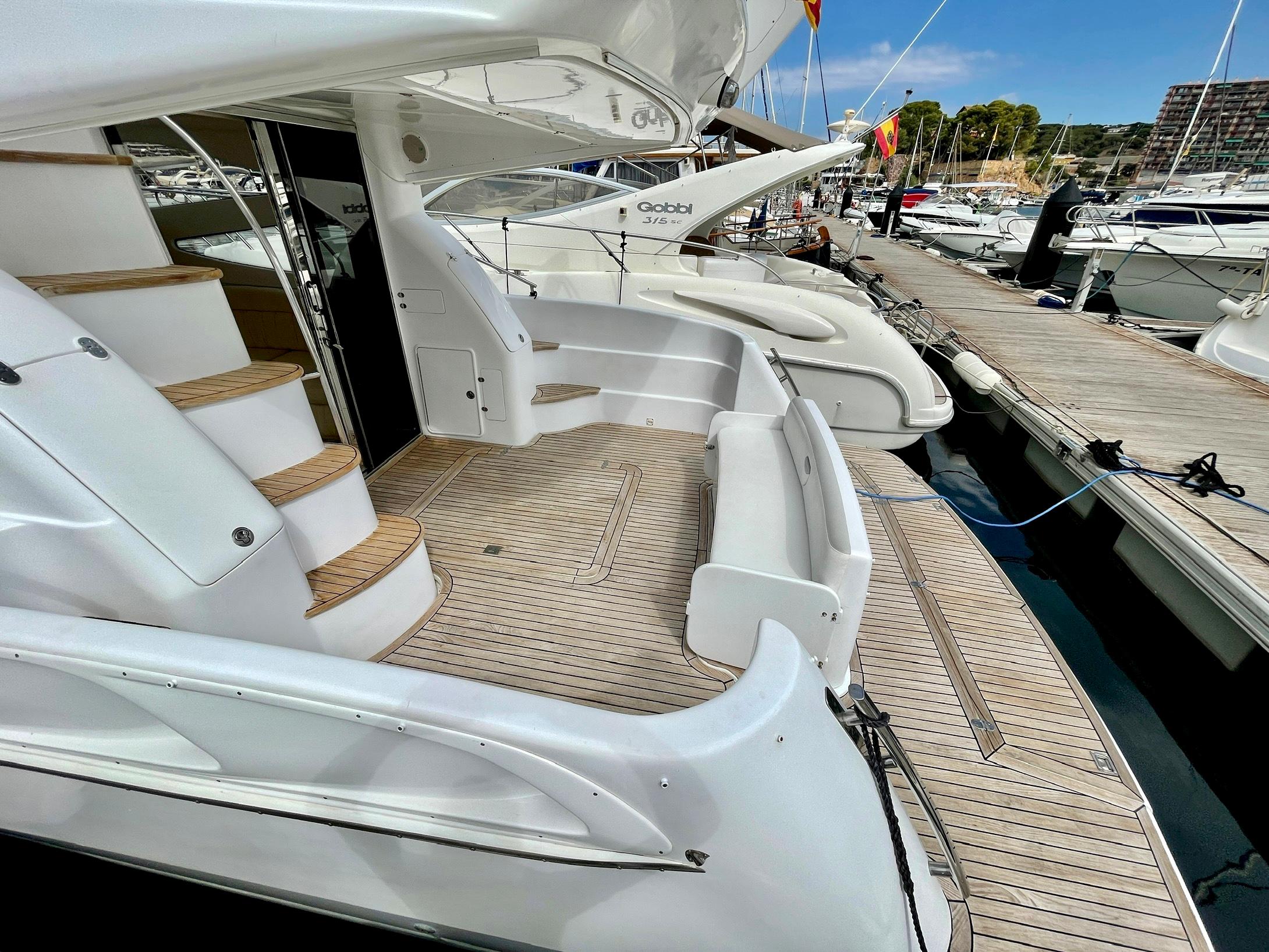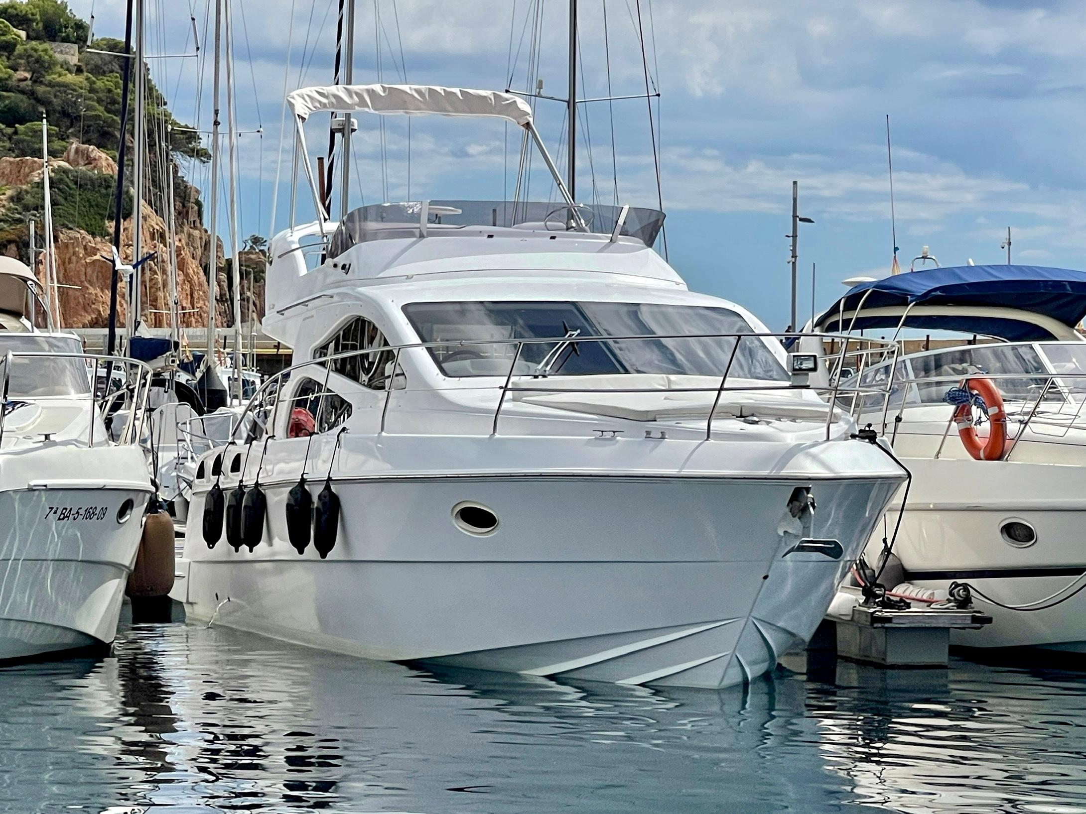 Embarcación del astillero Genesis del Plata, modelo 37 Fly del año 2007 equipado con dos motores Cummins 6BTA 5.9 diésel de 330 caballos cada uno y tan solo 520 horas de navegación. Barco en un estado inmejorable, muy bien equipado y cuidado al detalle por su propietario. Consta de dos camarotes y un baño, con cocina abierta en el puente principal con mucha luz natural.
