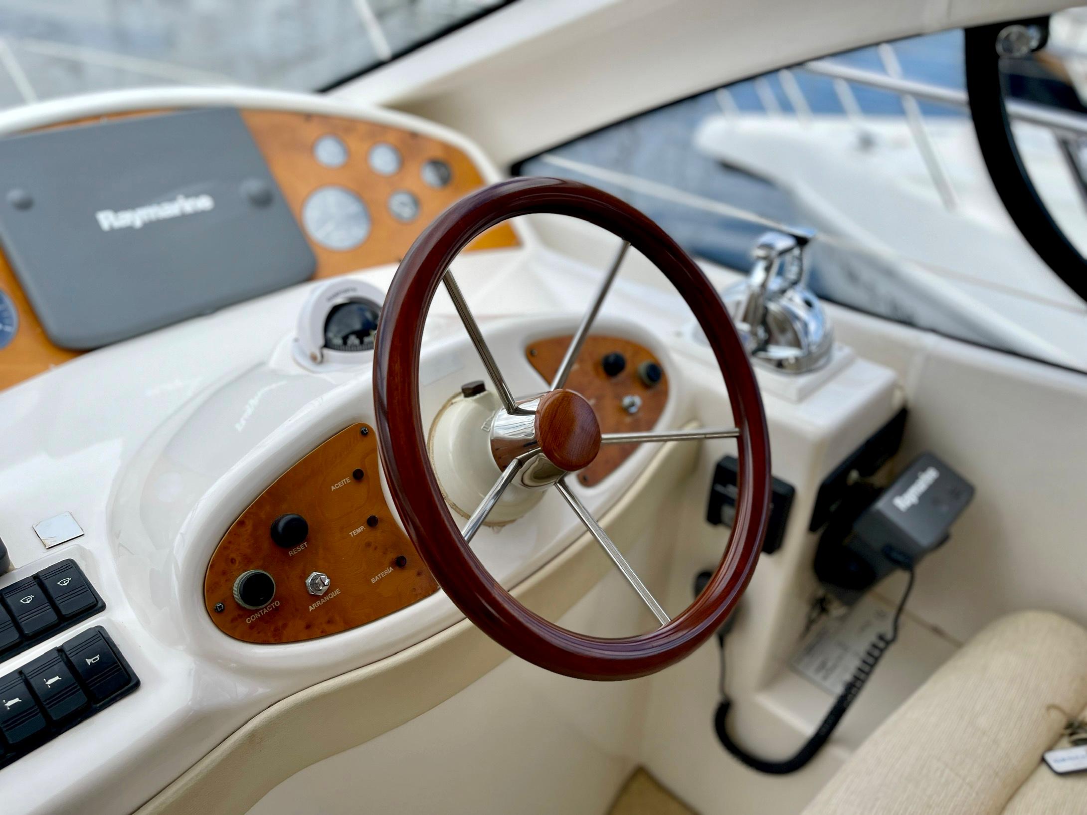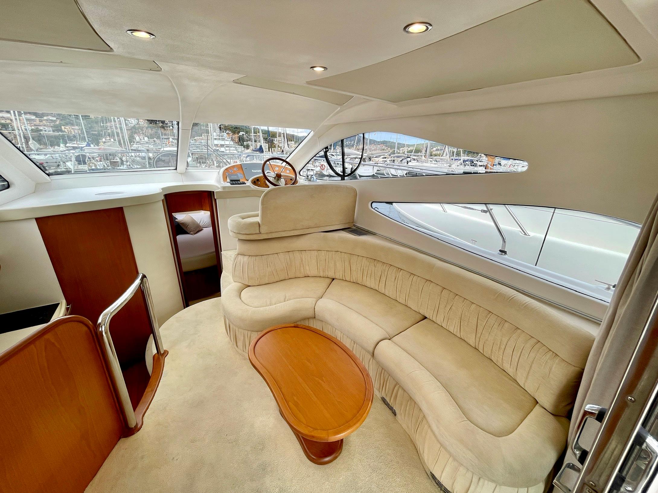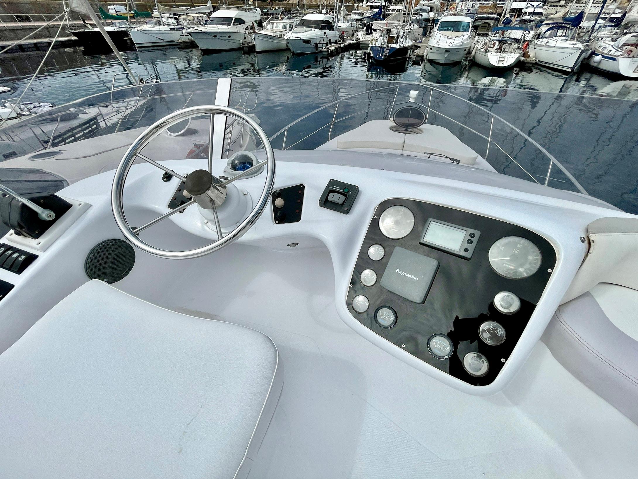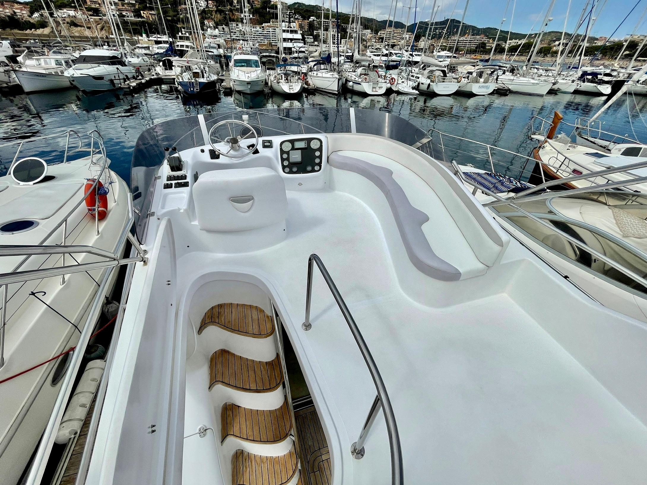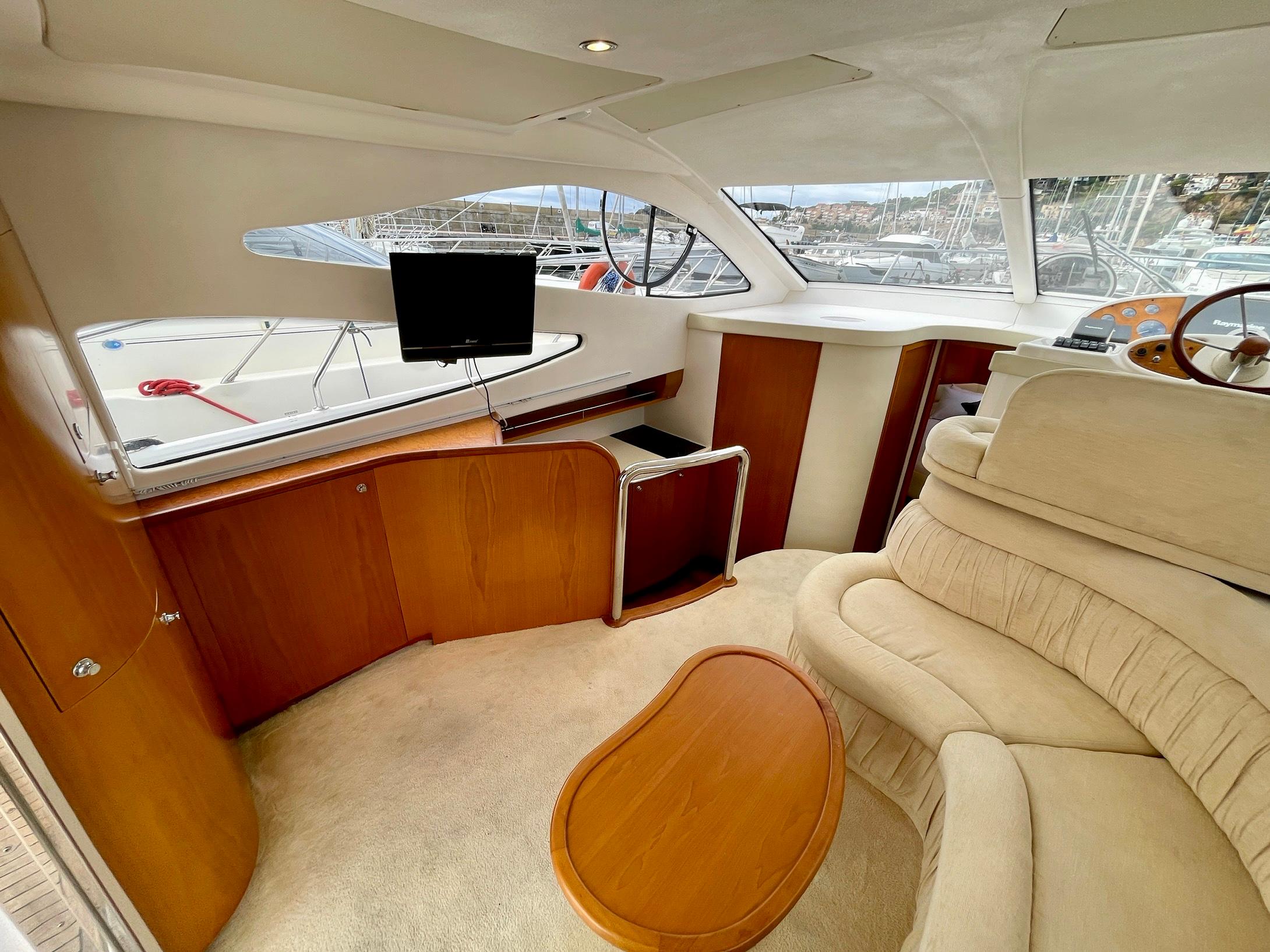 Embarcación del astillero Genesis del Plata, modelo 37 Fly del año 2007 equipado con dos motores Cummins 6BTA 5.9 diésel de 330 caballos cada uno y tan solo 520 horas de navegación. Barco en un estado inmejorable, muy bien equipado y cuidado al detalle por su propietario. Consta de dos camarotes y un baño, con cocina abierta en el puente principal con mucha luz natural.