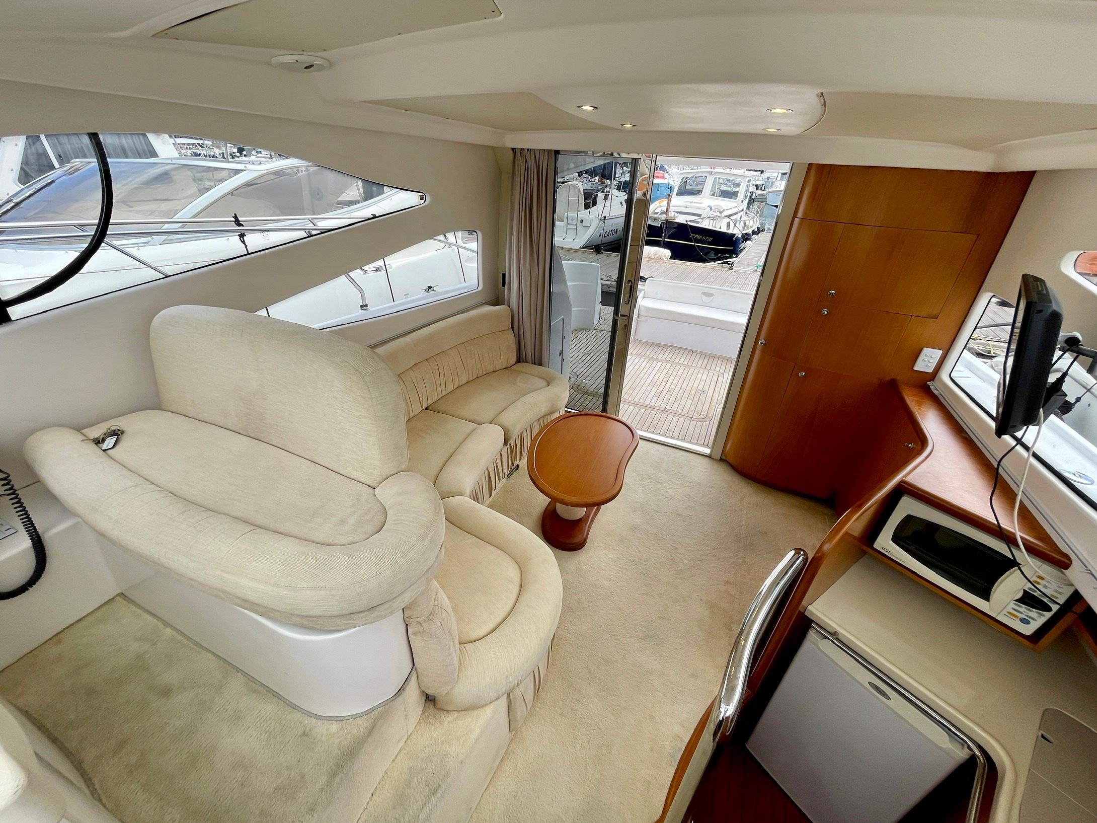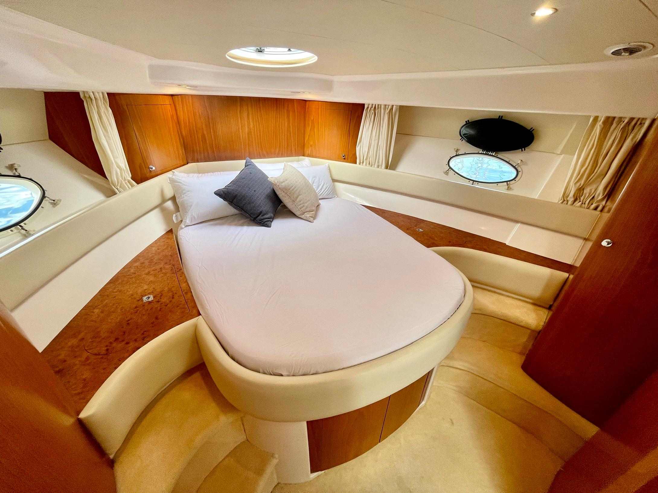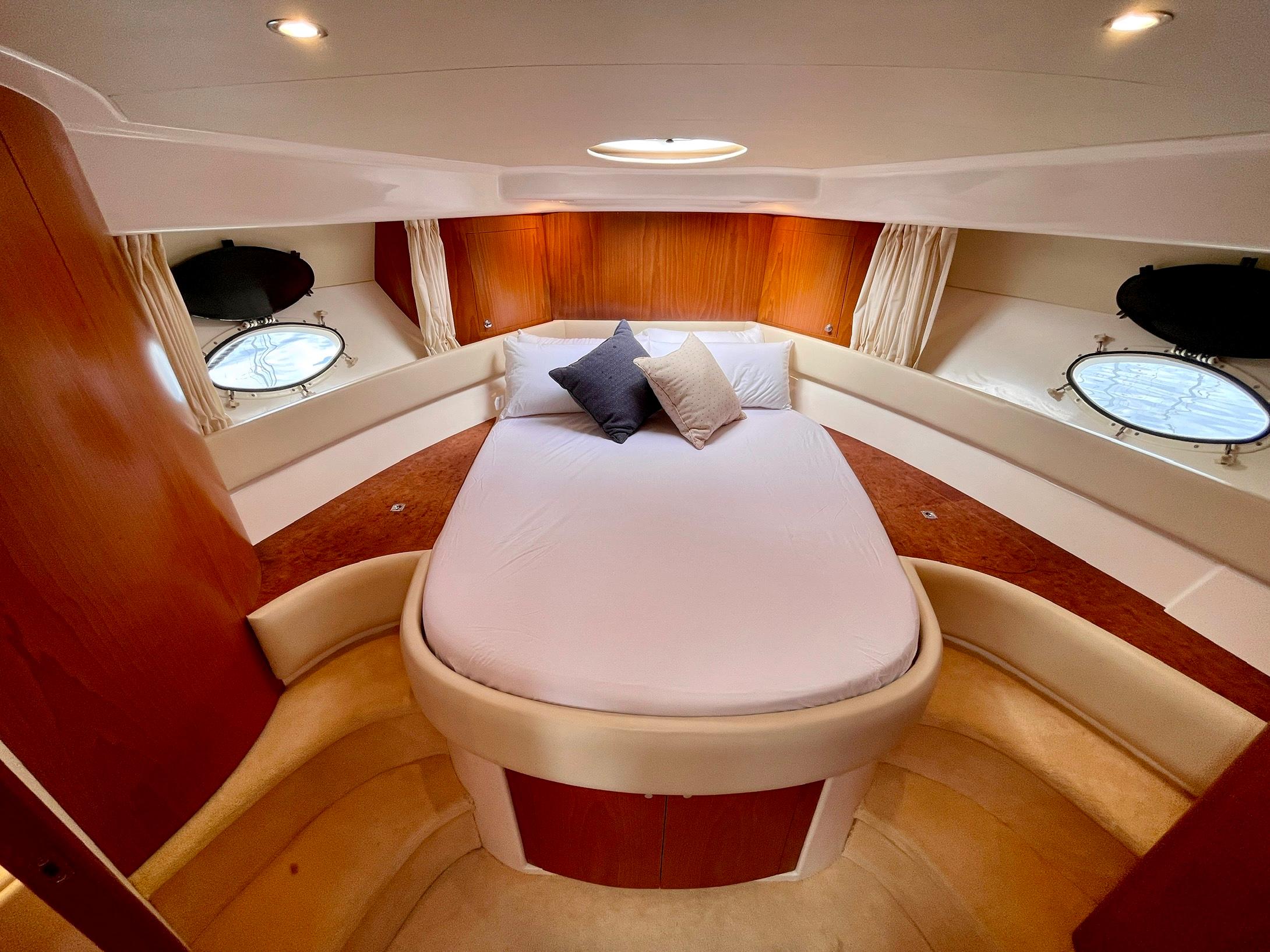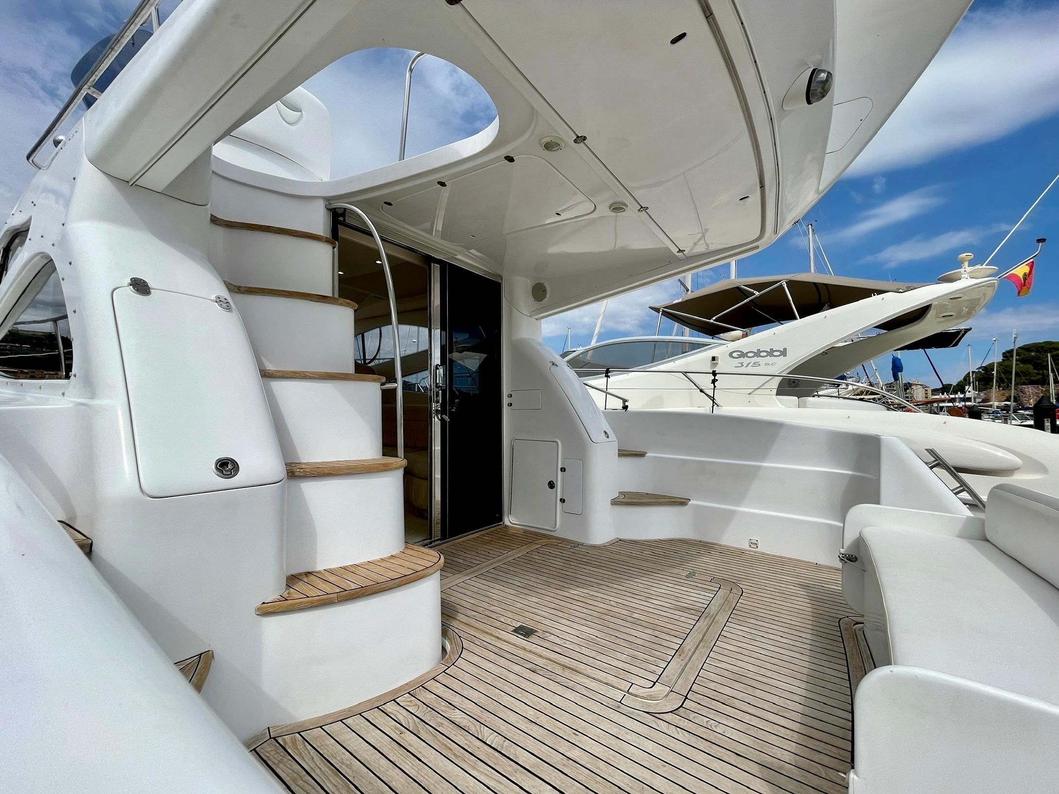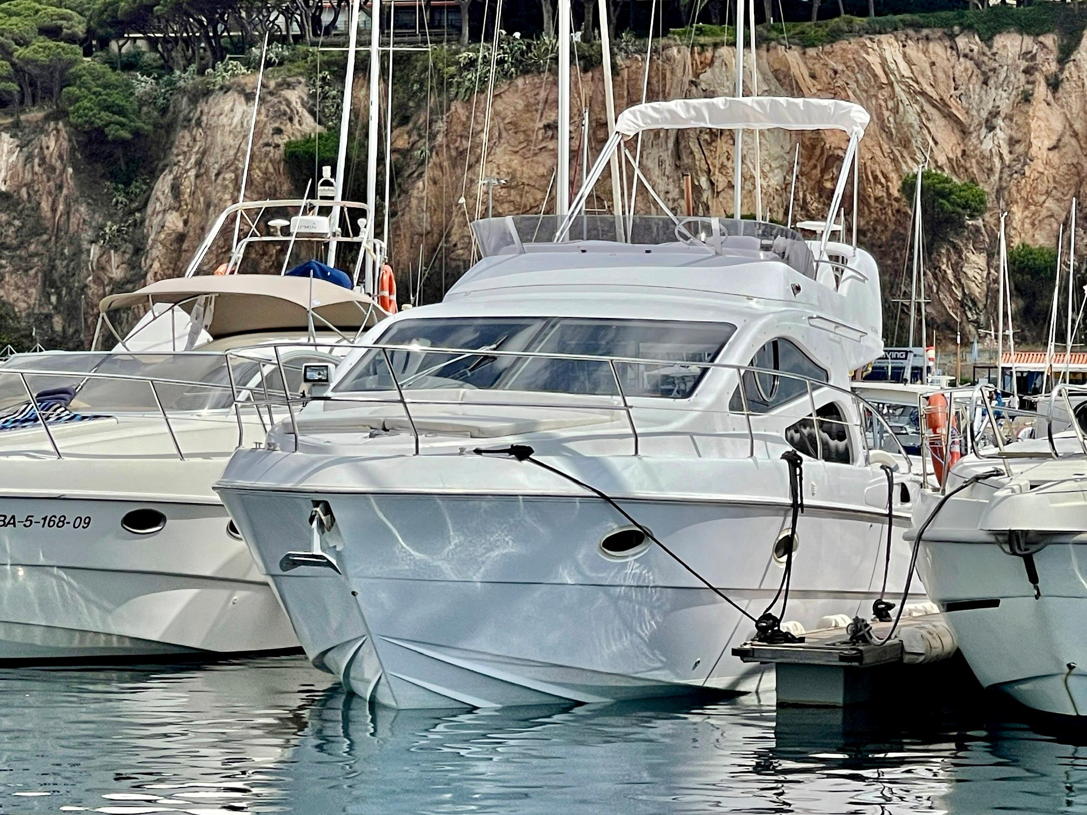Embarcación del astillero Genesis del Plata, modelo 37 Fly del año 2007 equipado con dos motores Cummins 6BTA 5.9 diésel de 330 caballos cada uno y tan solo 520 horas de navegación. Barco en un estado inmejorable, muy bien equipado y cuidado al detalle por su propietario. Consta de dos camarotes y un baño, con cocina abierta en el puente principal con mucha luz natural.