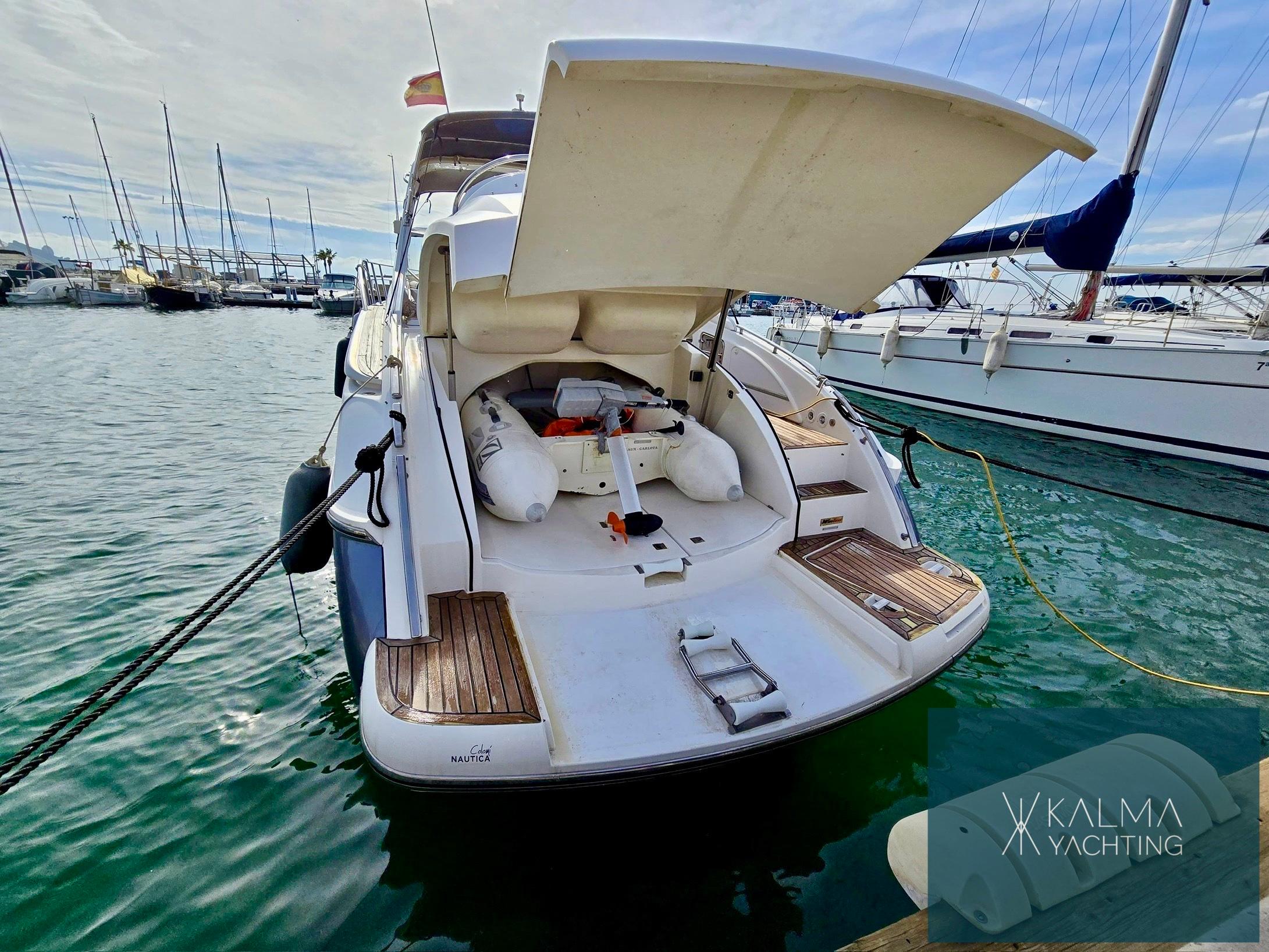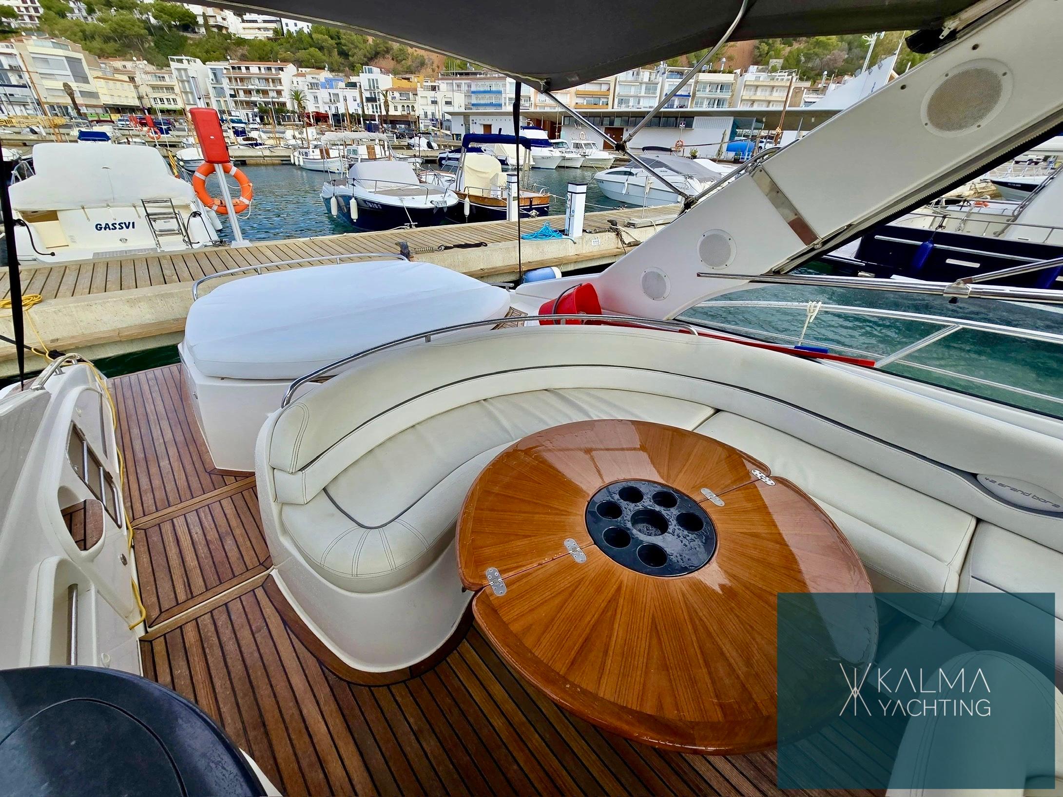 En termes de commodités, le Gran Bora 42 dispose d'une large plate-forme de bain pour faciliter l'accès à l'eau, d'un auvent rétractable offrant de l'ombre sur le pont, et de généreuses zones de solarium à la fois à l'avant et à l'arrière, idéales pour se détendre et profiter du soleil.