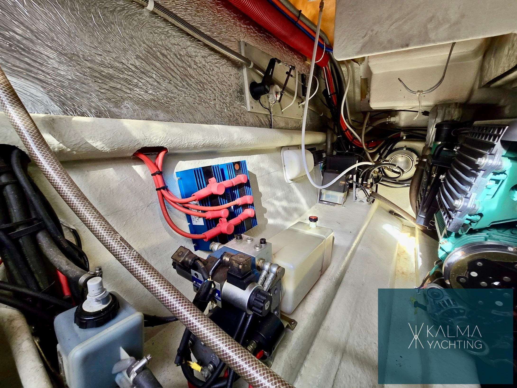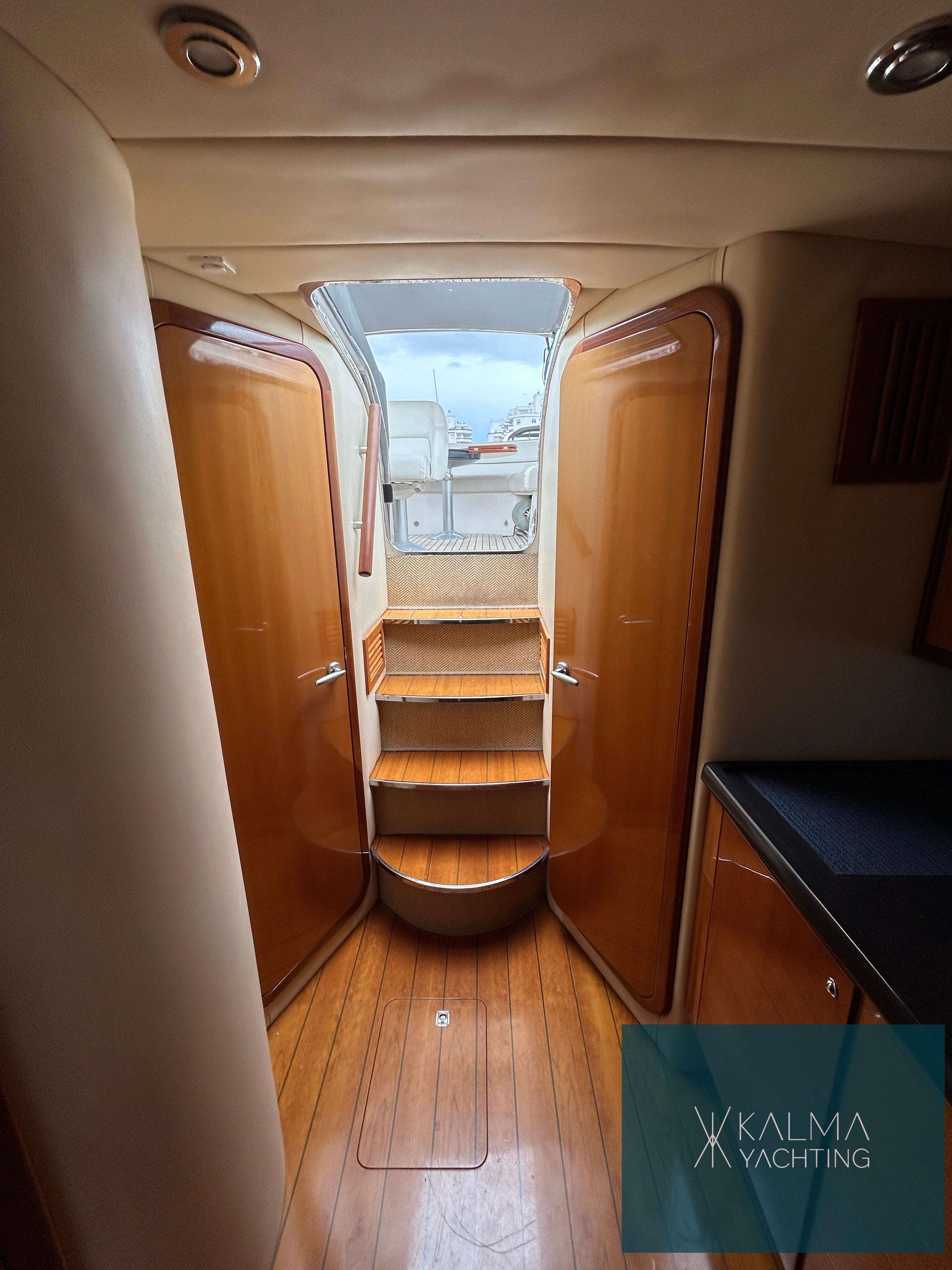 De plus, il est équipé d'un garage hydraulique à l'arrière, ce qui facilite le stockage et l'accès aux jouets aquatiques et aux équipements de navigation supplémentaires, ajoutant une couche de commodité et de polyvalence à ce navire impressionnant.