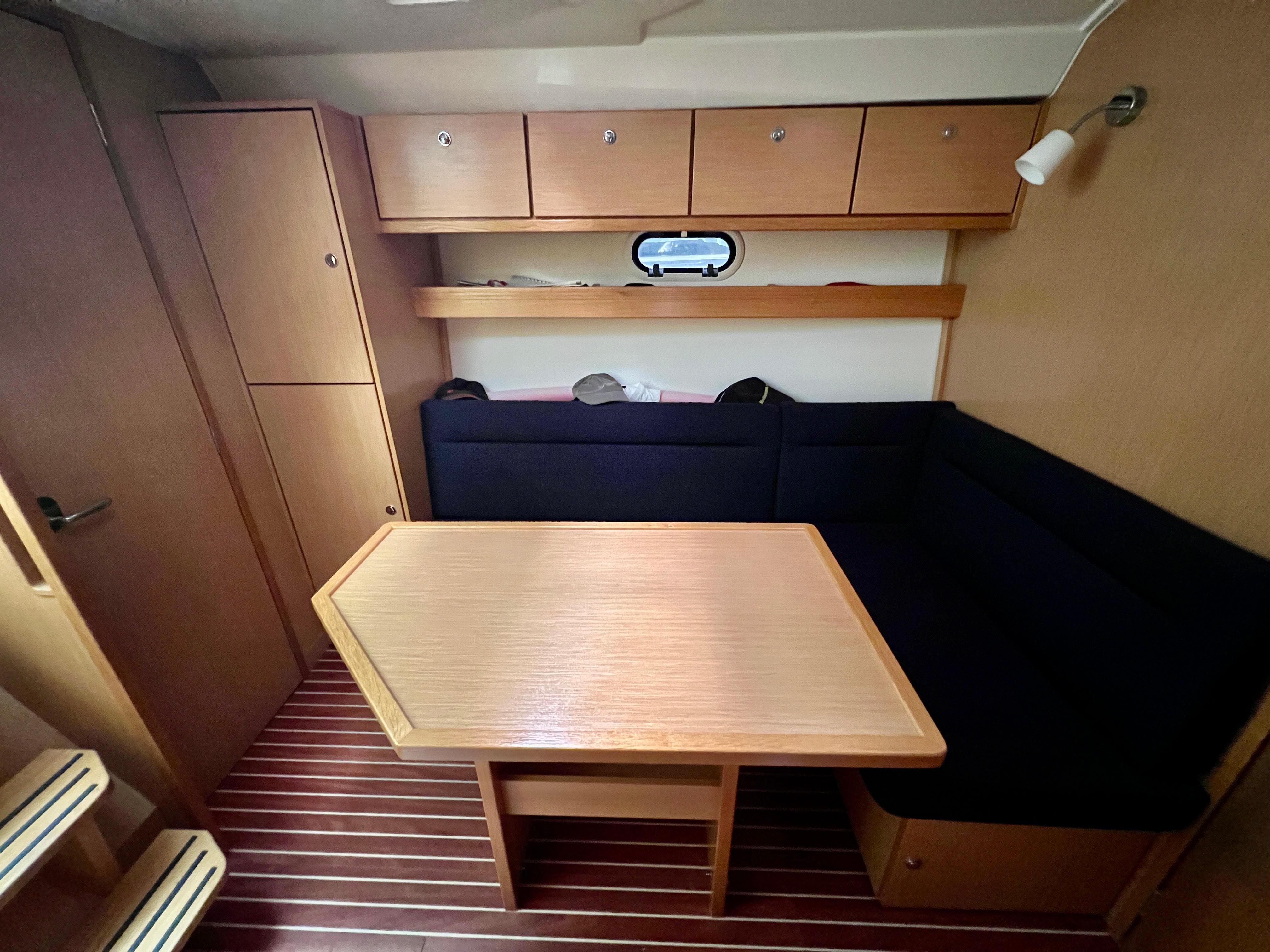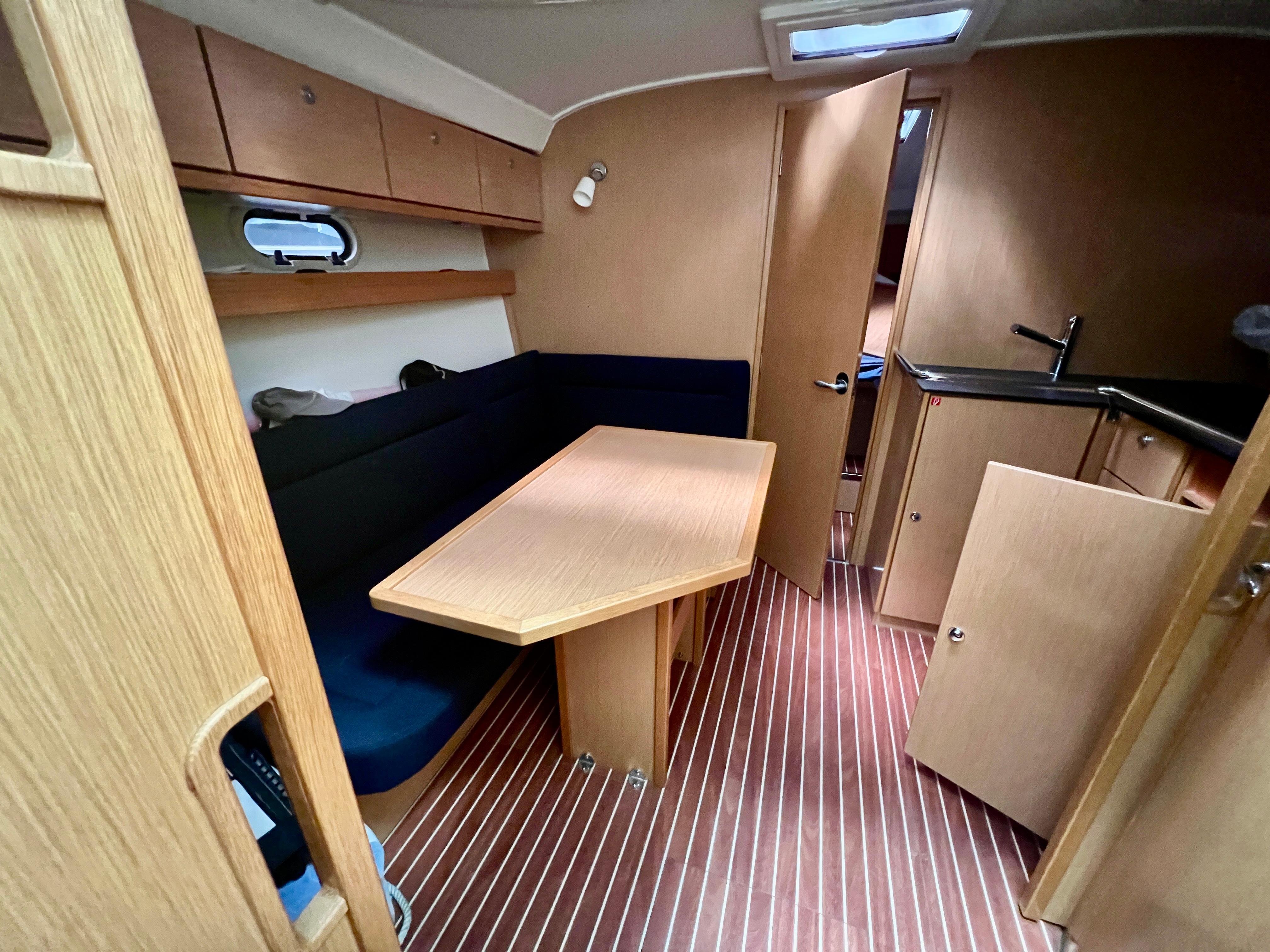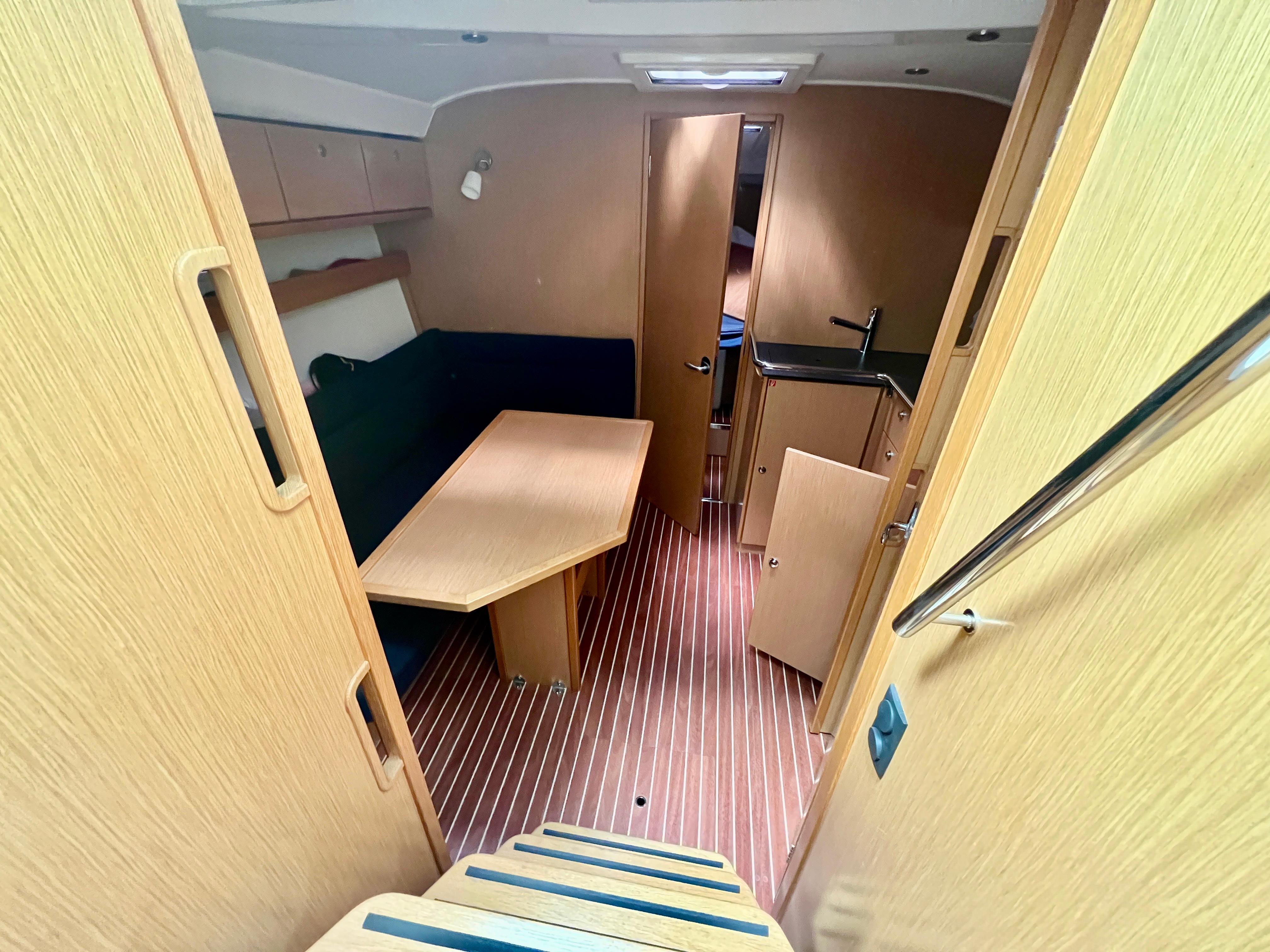 Cuenta con un diseño de cubierta amplio y funcional, con solárium en proa, bañera con arco abatible para los puentes de Empuriabrava, bimini, y una cómoda zona de estar en la bañera, ideal para socializar. Bajo cubierta, ofrece un interior moderno y bien distribuido con dos camarotes, una cocina equipada, comedor convertible y un baño completo, lo que la hace perfecta para escapadas de fin de semana o travesías más largas.