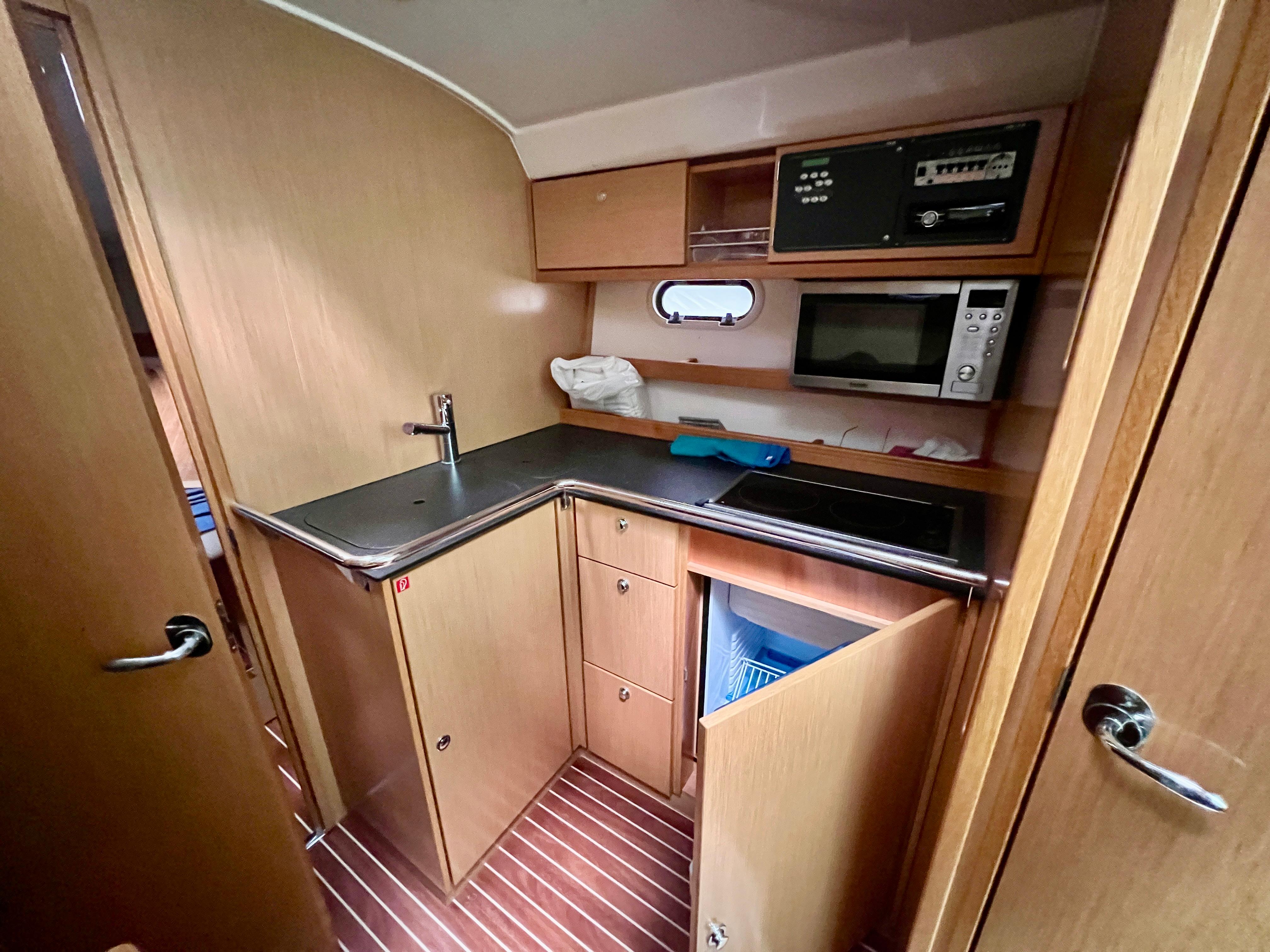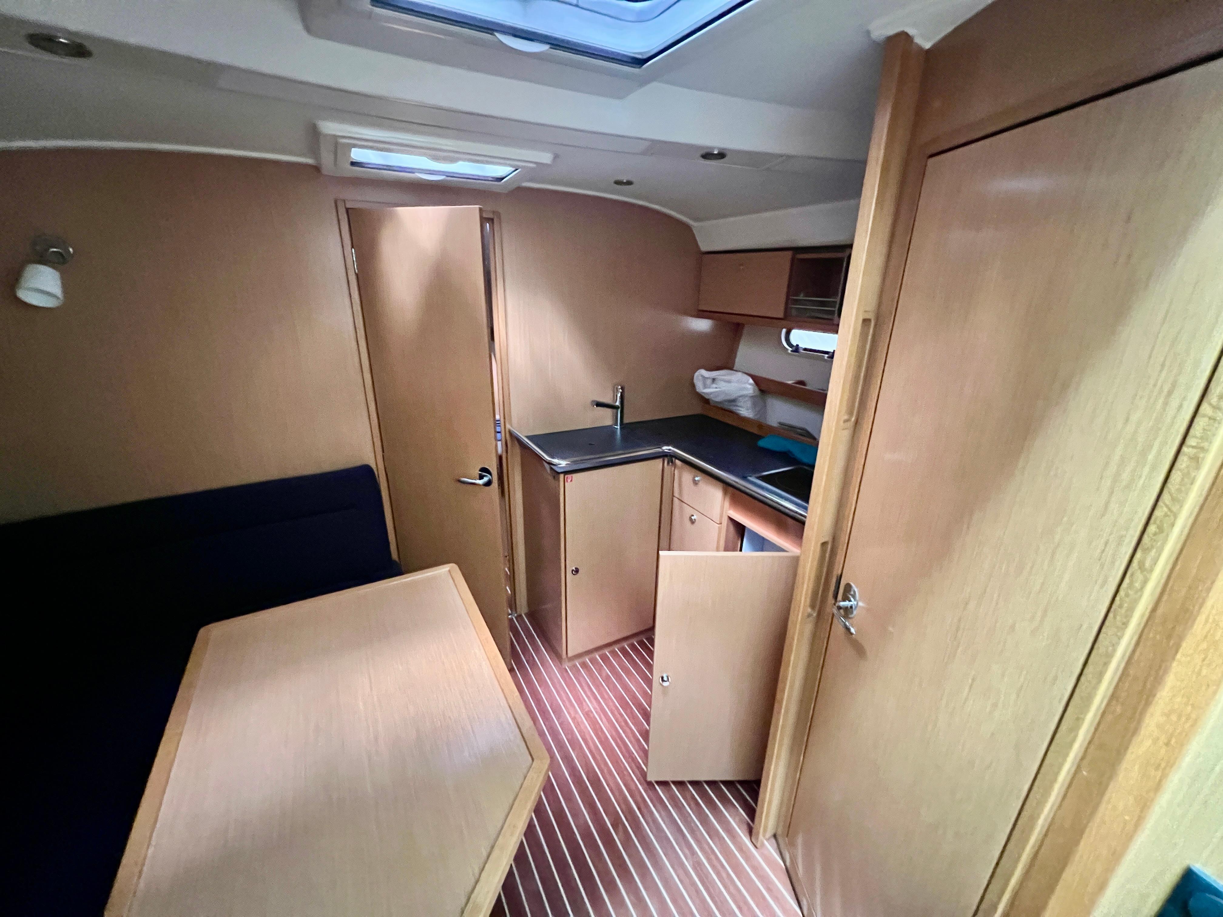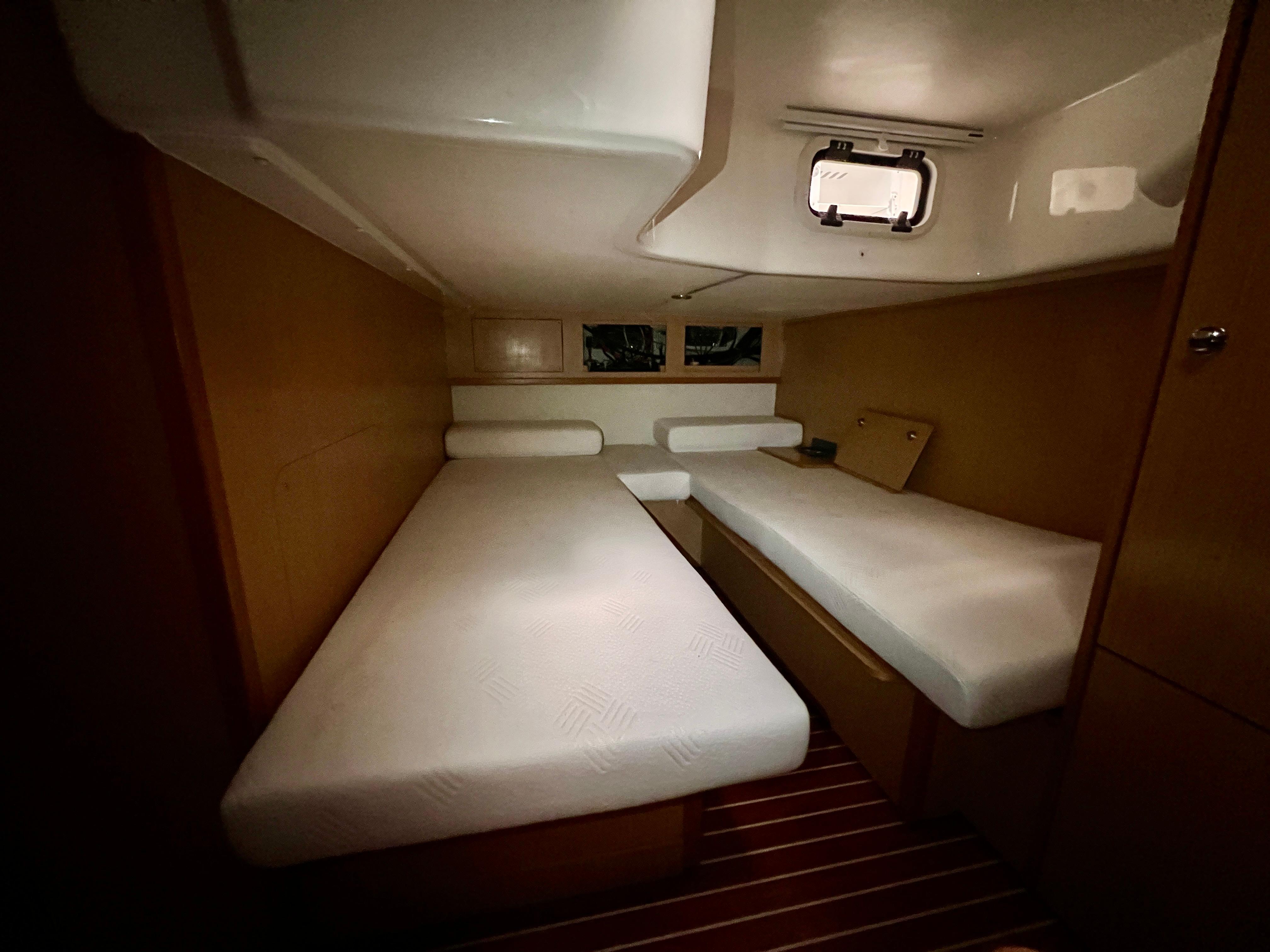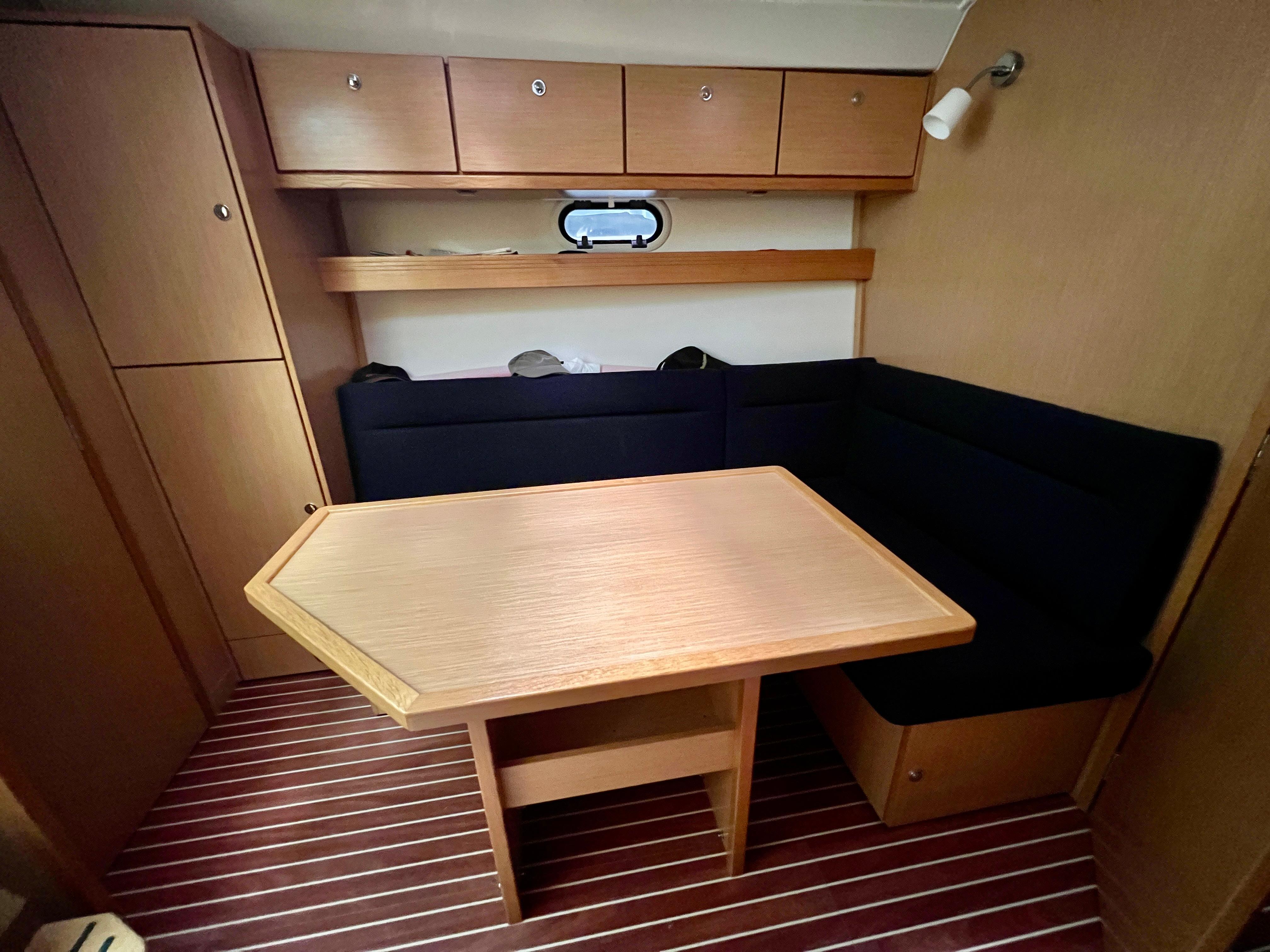 Cuenta con un diseño de cubierta amplio y funcional, con solárium en proa, bañera con arco abatible para los puentes de Empuriabrava, bimini, y una cómoda zona de estar en la bañera, ideal para socializar. Bajo cubierta, ofrece un interior moderno y bien distribuido con dos camarotes, una cocina equipada, comedor convertible y un baño completo, lo que la hace perfecta para escapadas de fin de semana o travesías más largas.