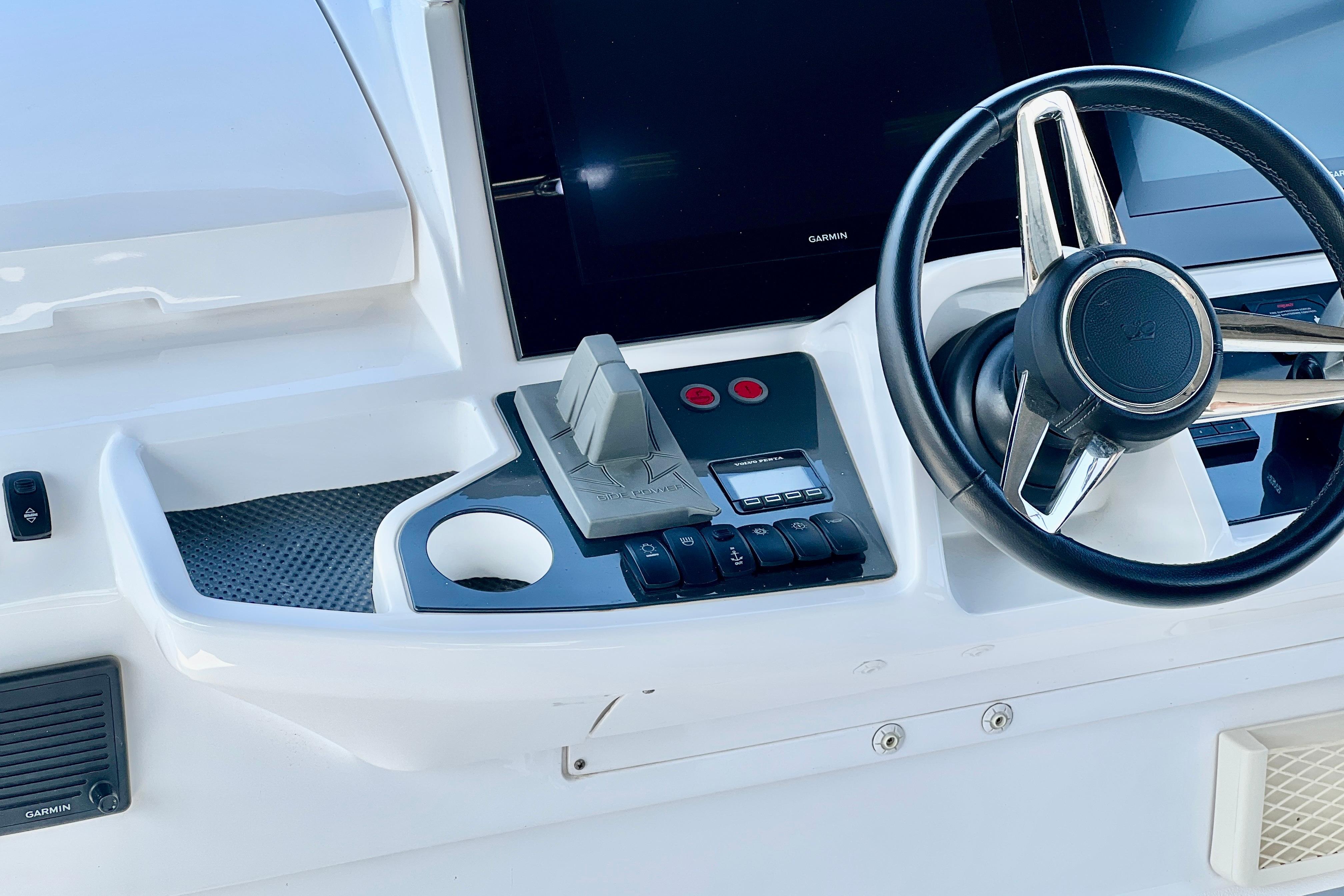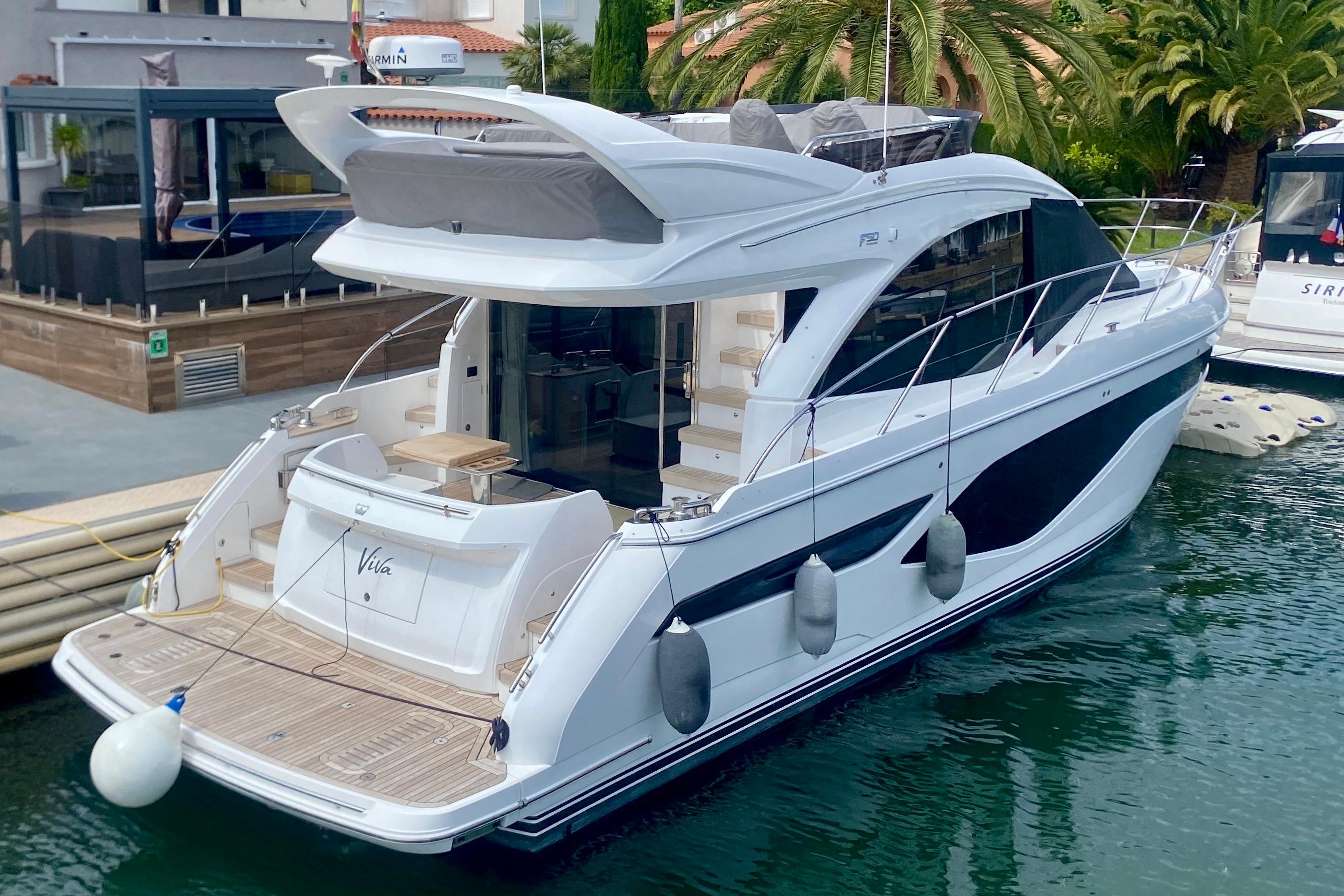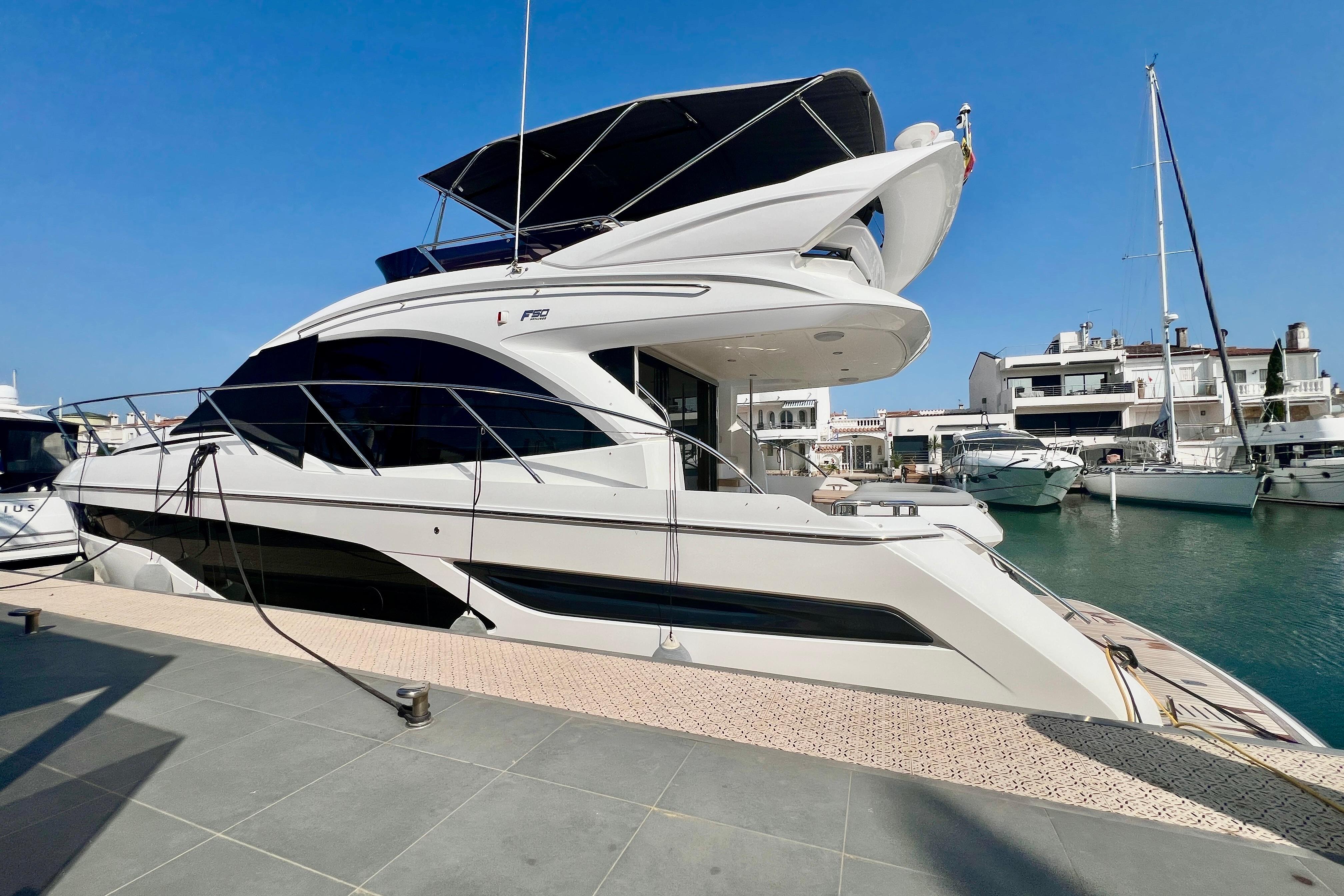Con una eslora total de 15,55 metros (51 pies) y una manga de 4,34 metros, la F50 ofrece una distribución optimizada y una habitabilidad sorprendente para su tamaño. Está impulsada por dos motores Volvo IPS 800 (2 x 600 CV), que le permiten alcanzar velocidades superiores a los 34 nudos, con una maniobrabilidad excepcional gracias a su sistema de propulsión con joystick.