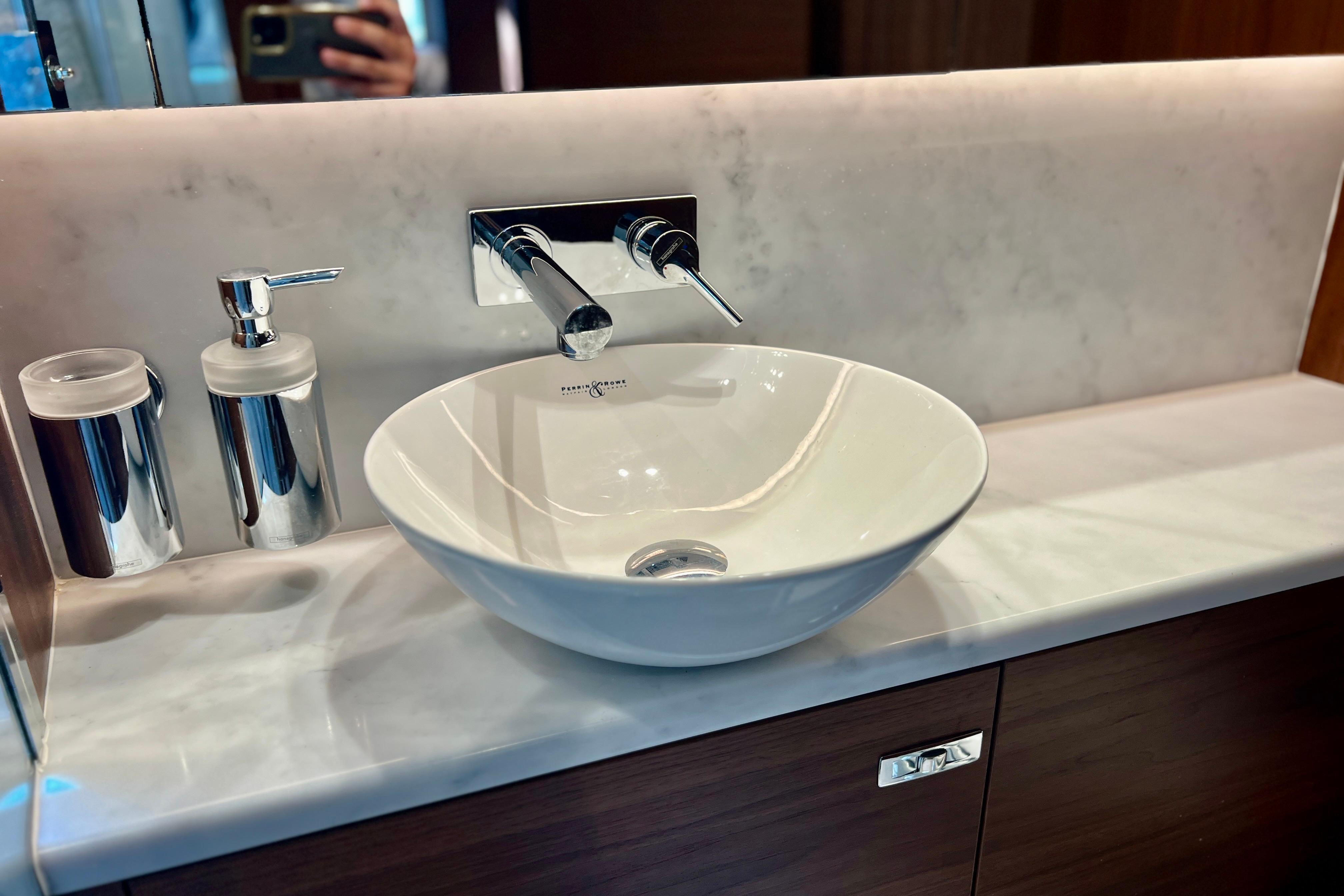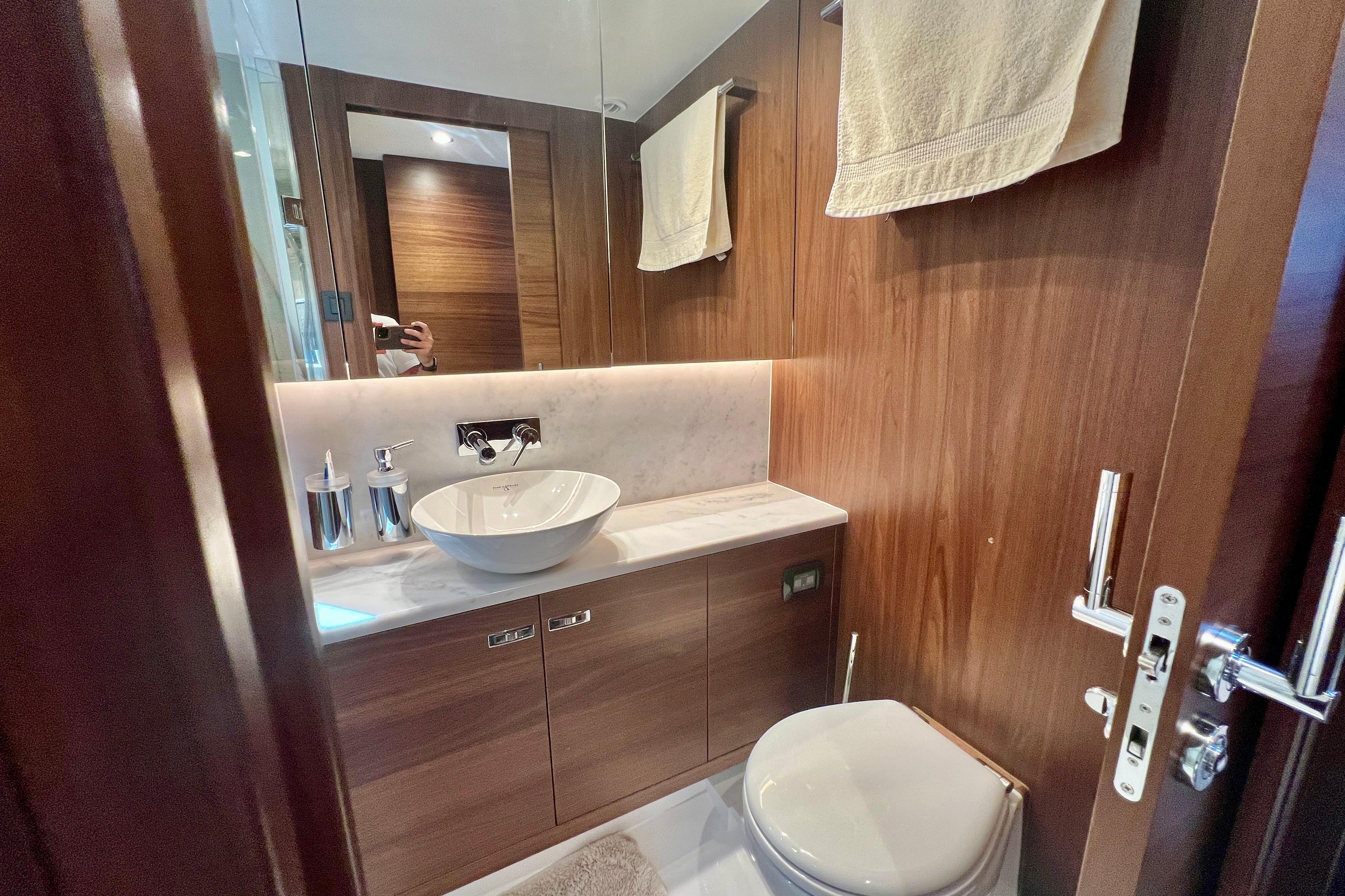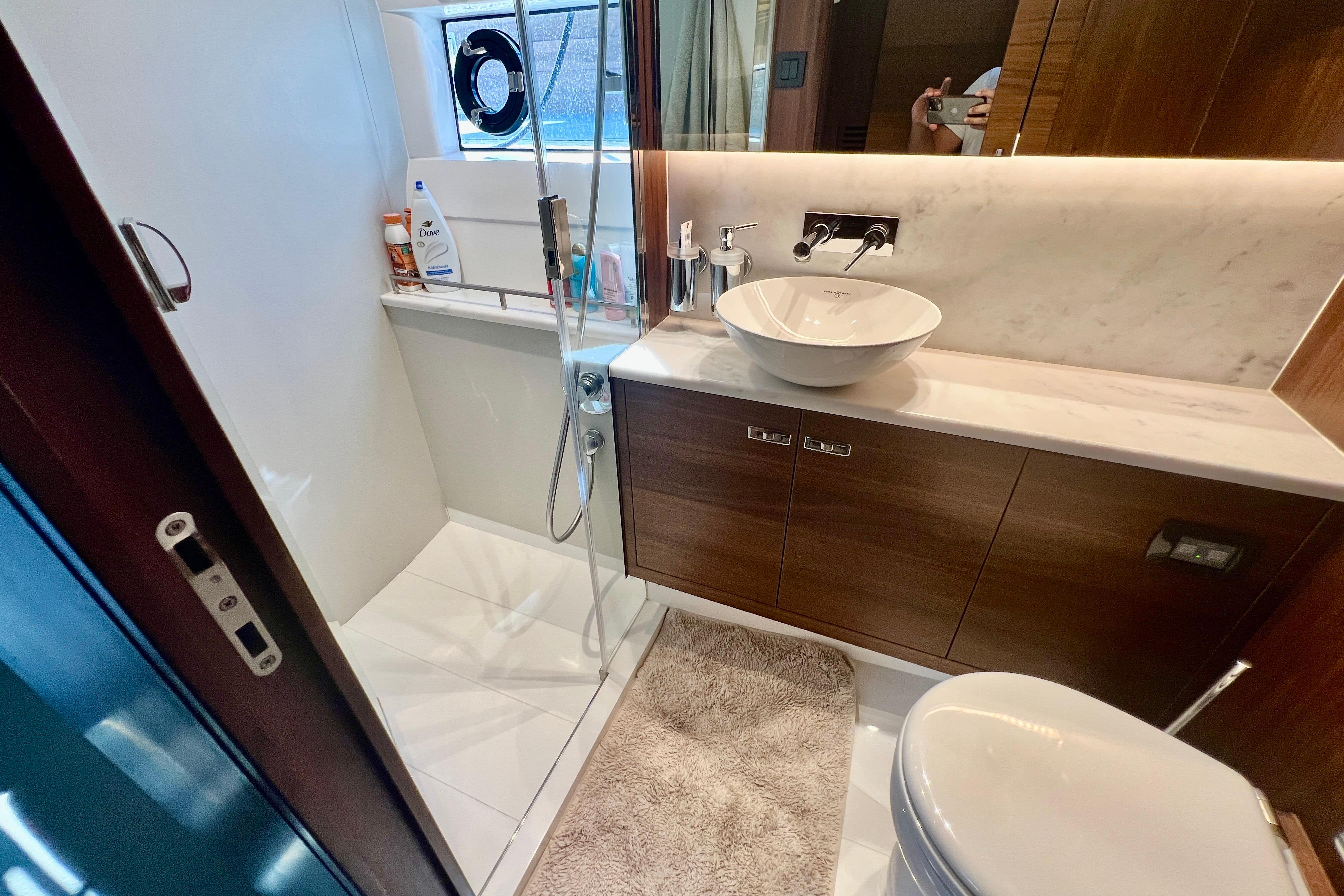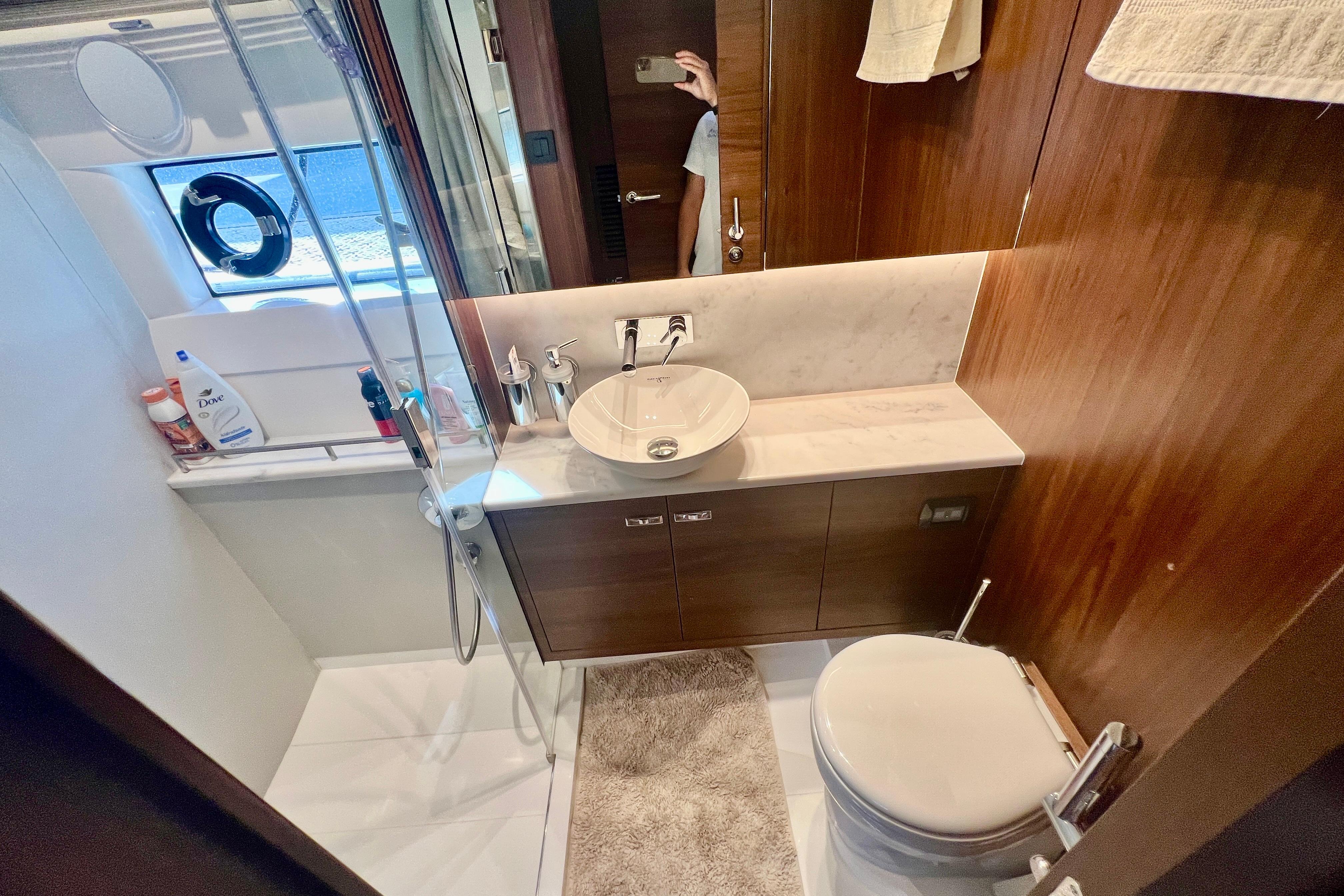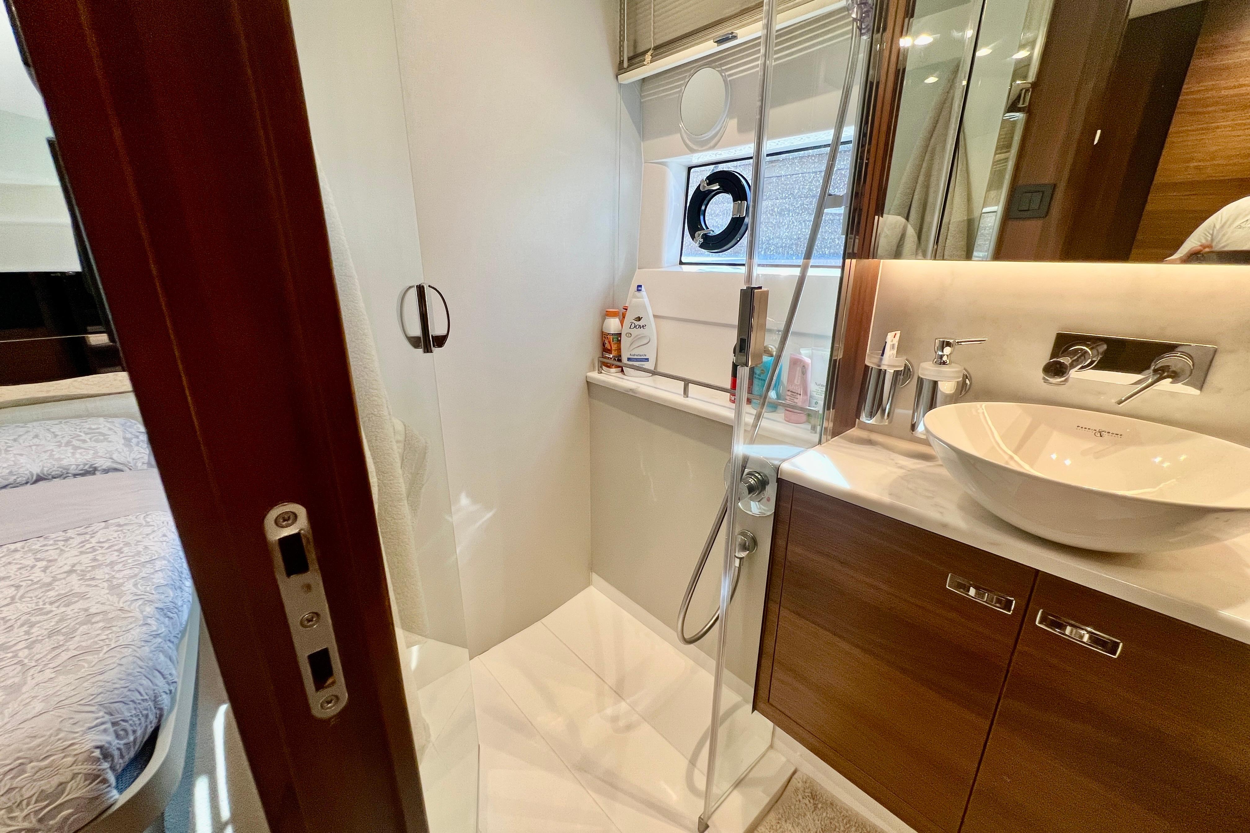 Una cabina VIP en proa, también con baño en suite (accesible como baño de día).