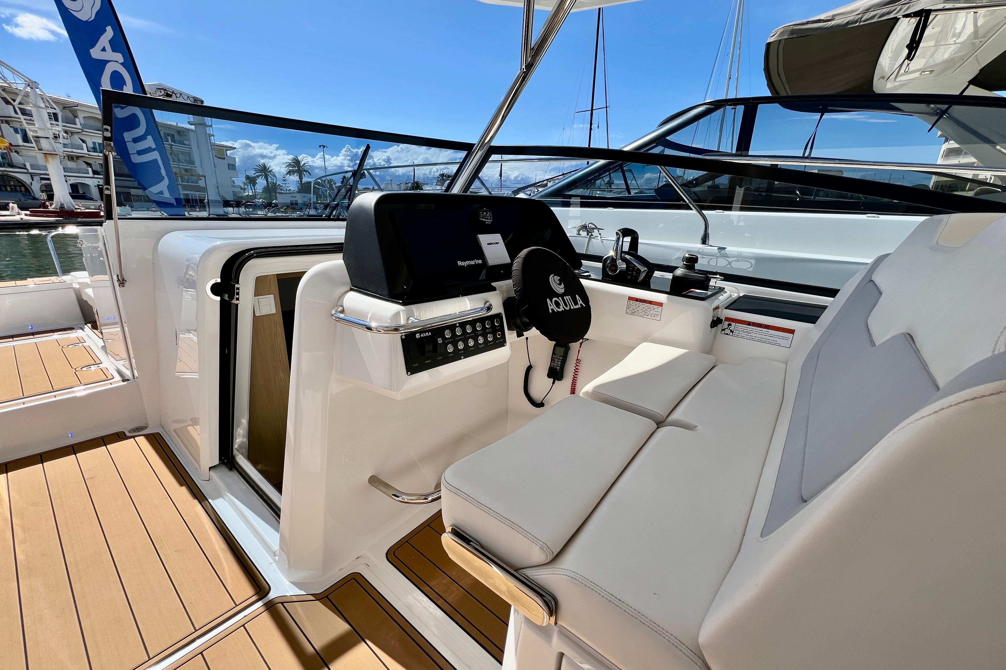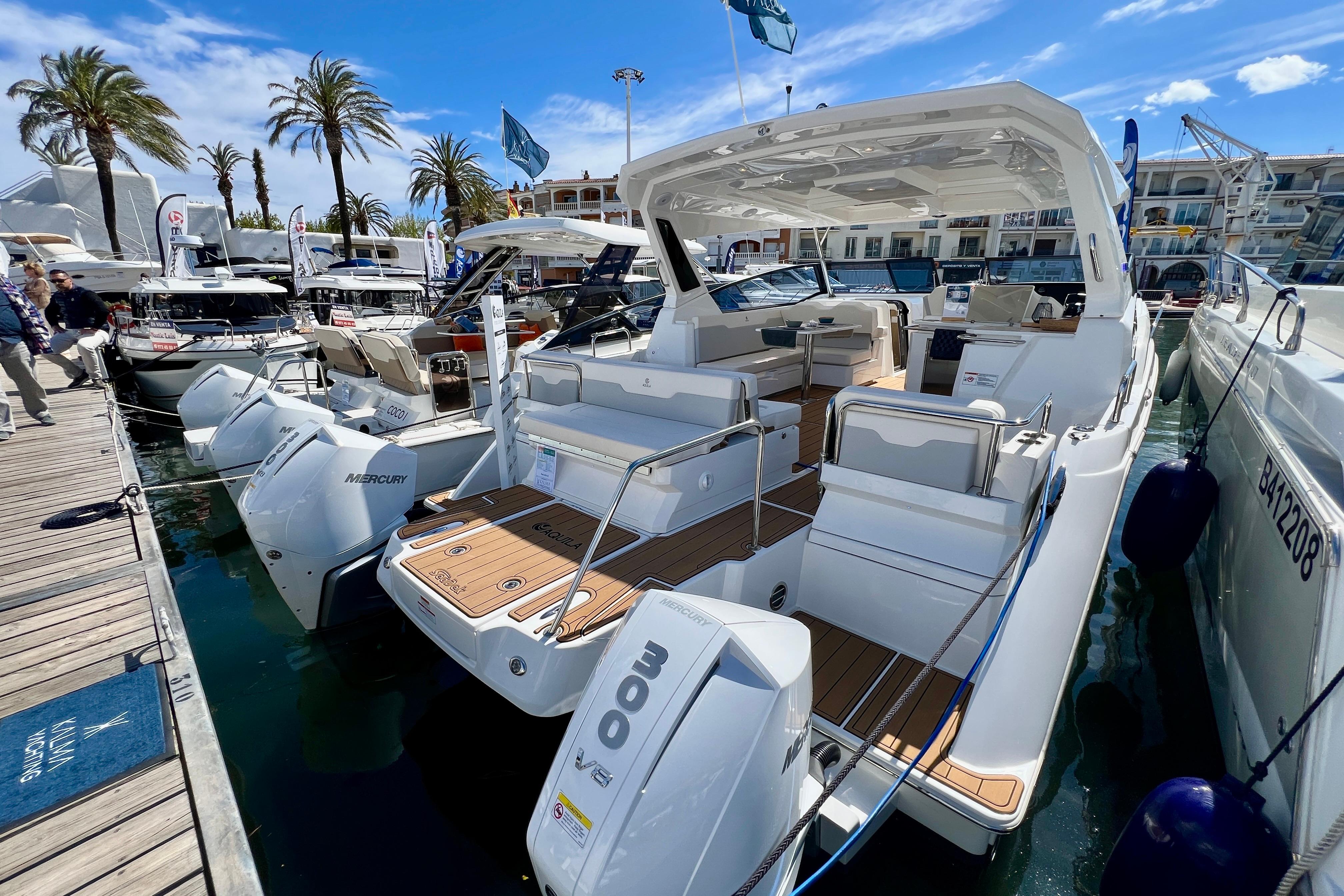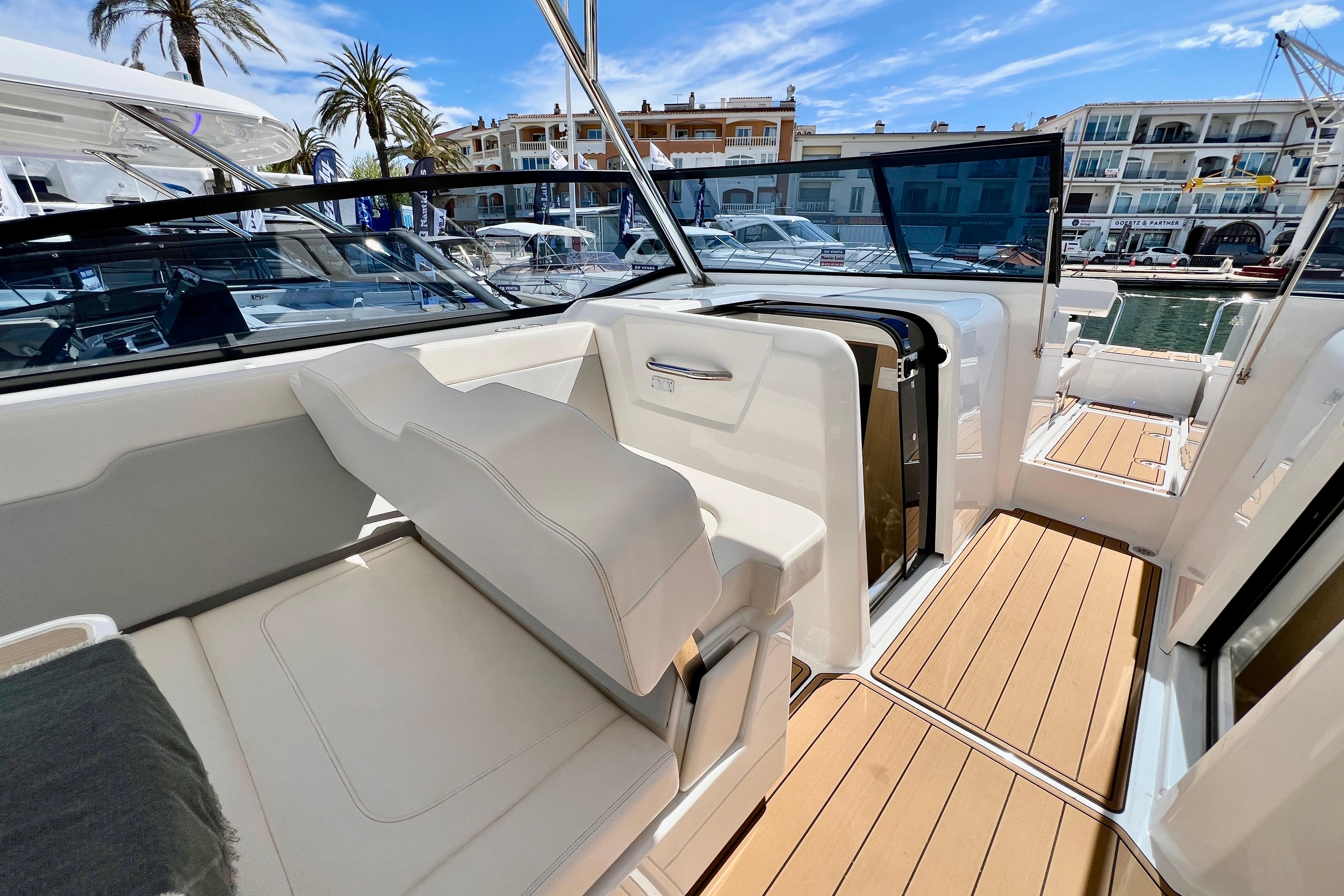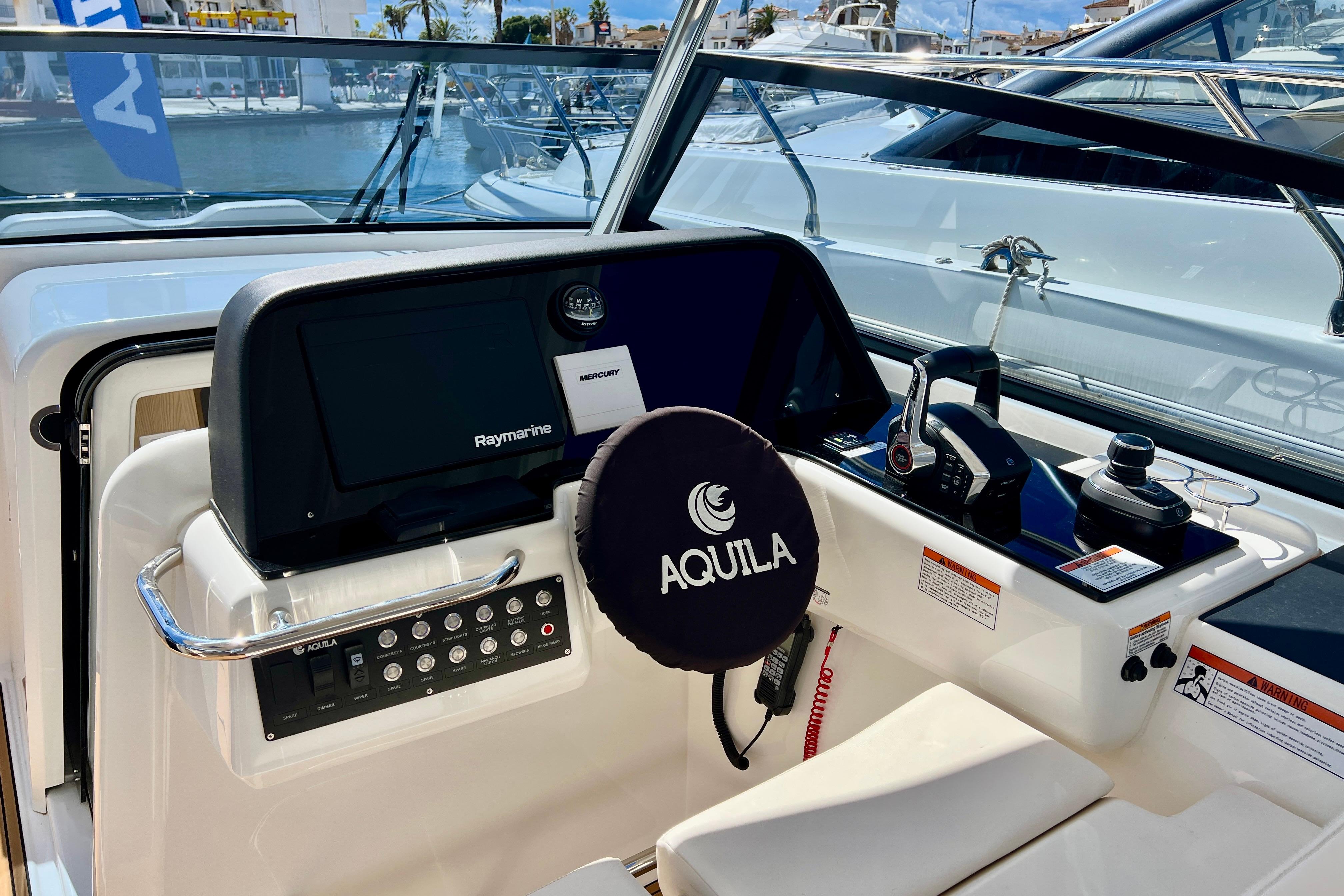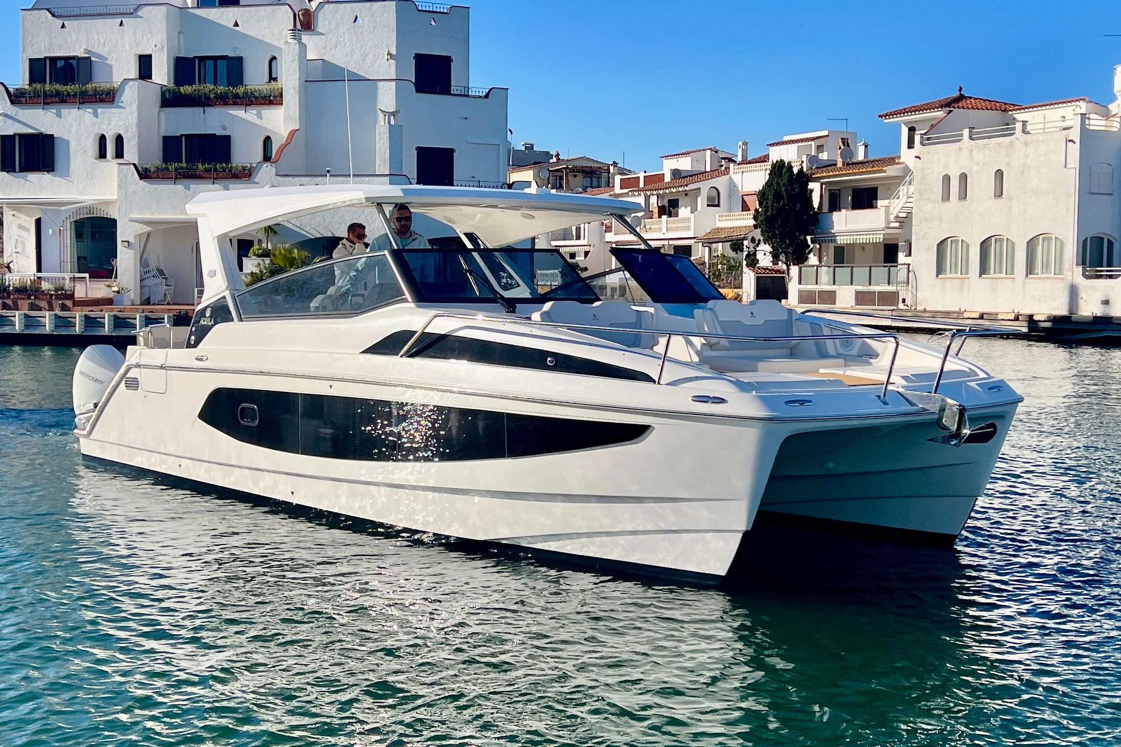 Equipada con un completo paquete de extras y acabados de alta gama, ofrece un confort a bordo de primer nivel tanto en navegación como en fondeo. Cuenta con dos potentes motores Mercury Verado V8 de última generación, un equipamiento de electrónica avanzado, tapicería premium y múltiples mejoras orientadas a la comodidad y la seguridad.