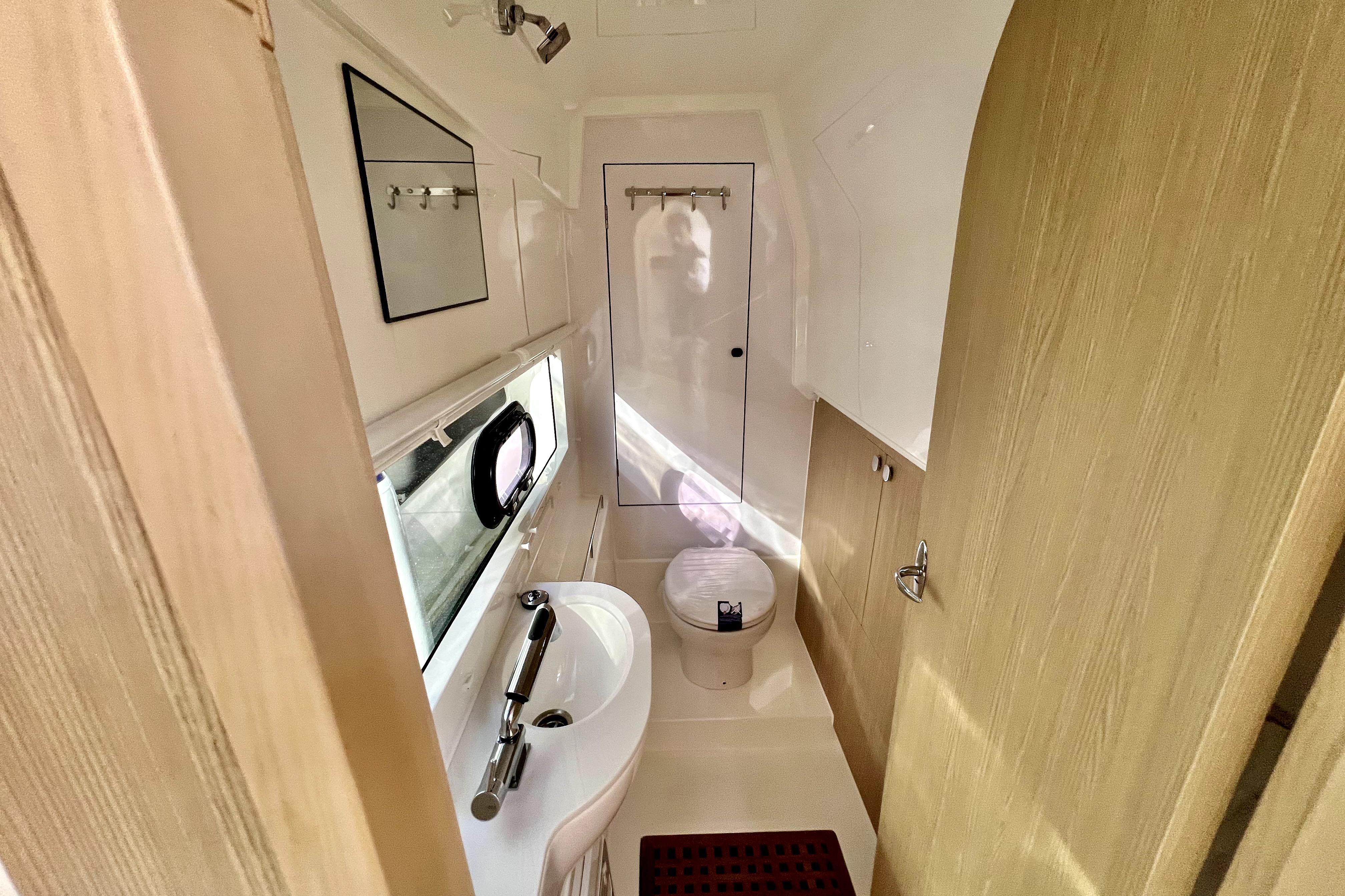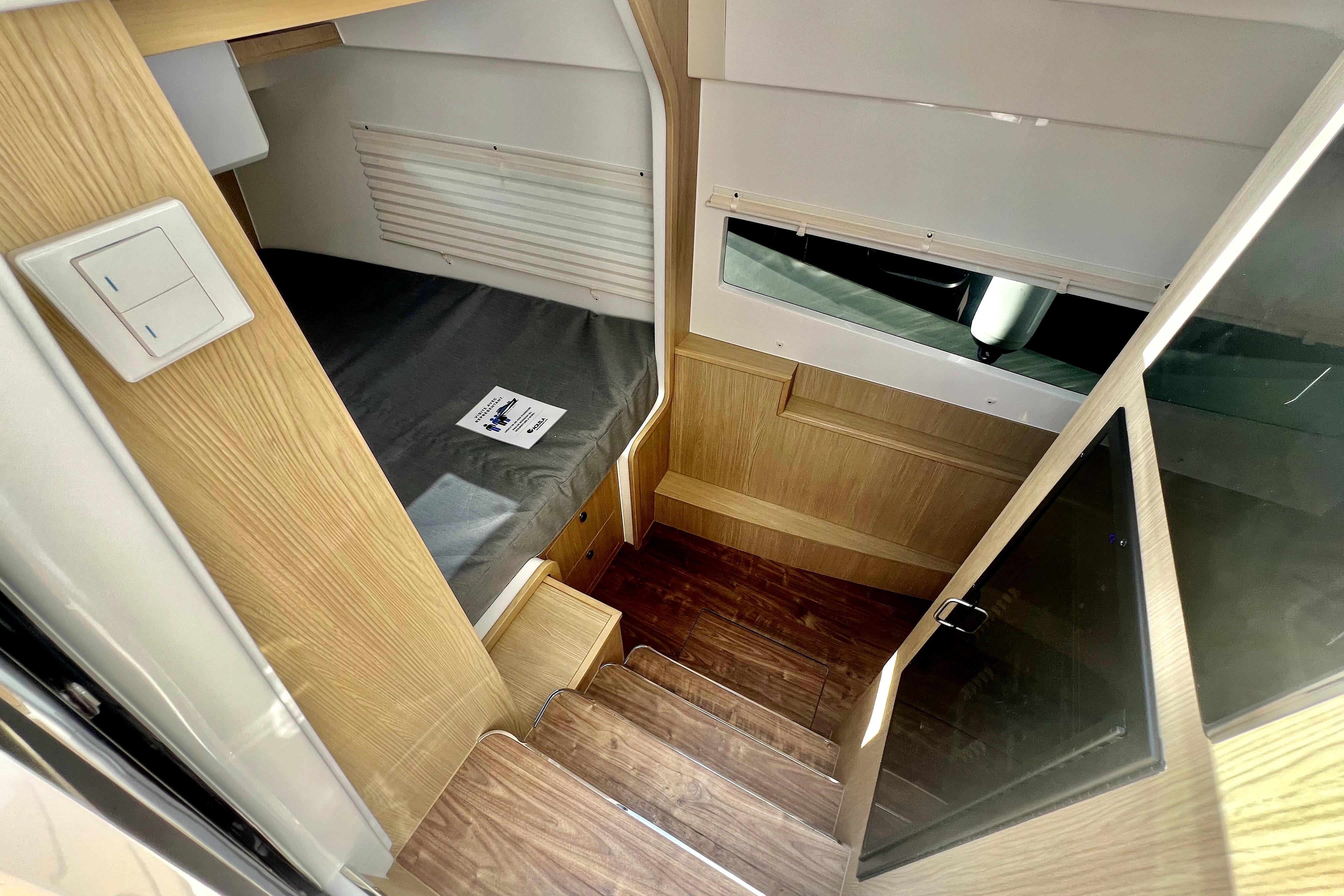 Se presenta en impecable estado, habiendo sido expuesta y utilizada únicamente en salones náuticos. Esta embarcación, prácticamente nueva, destaca por su moderno diseño, amplios espacios y excelente rendimiento en navegación.