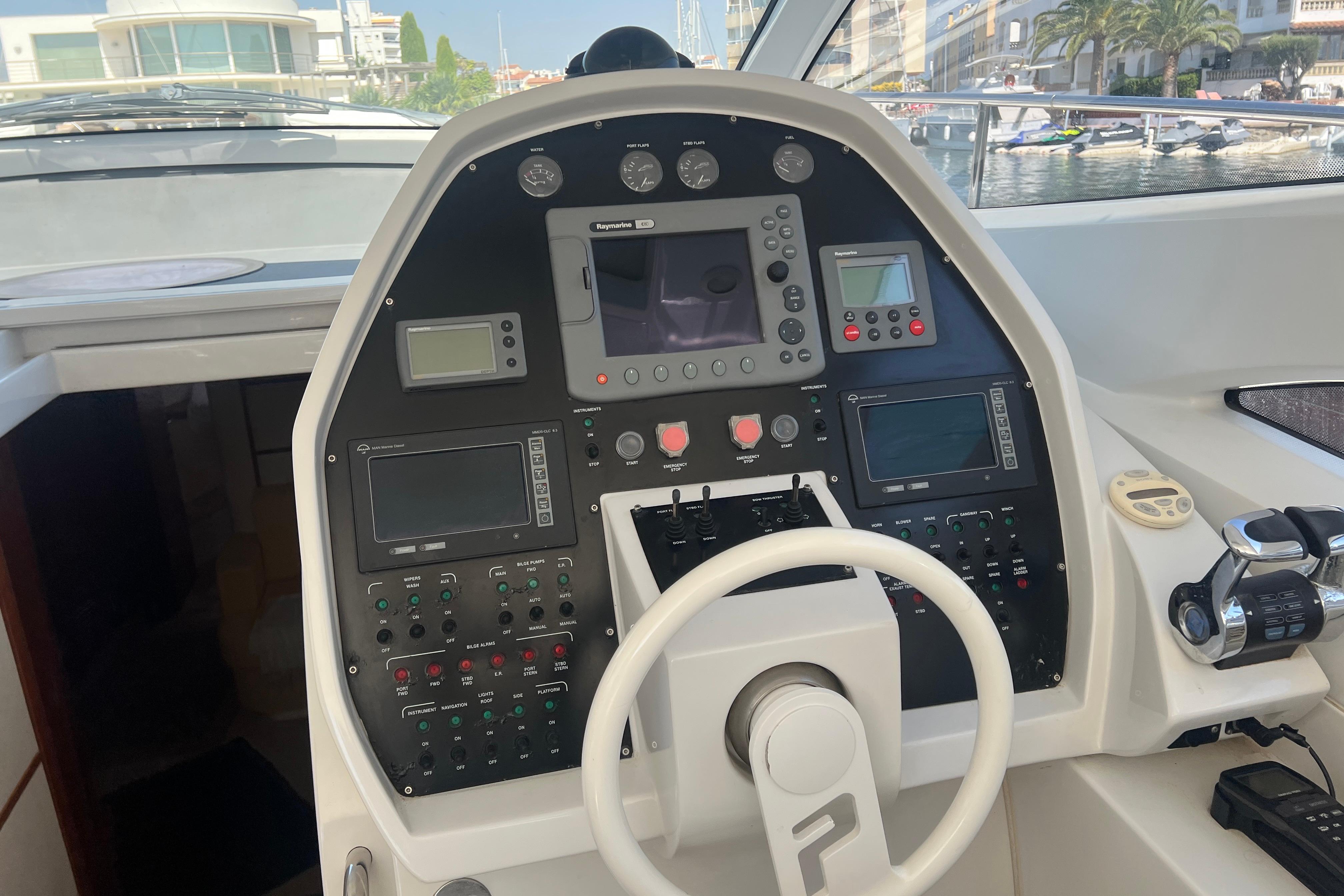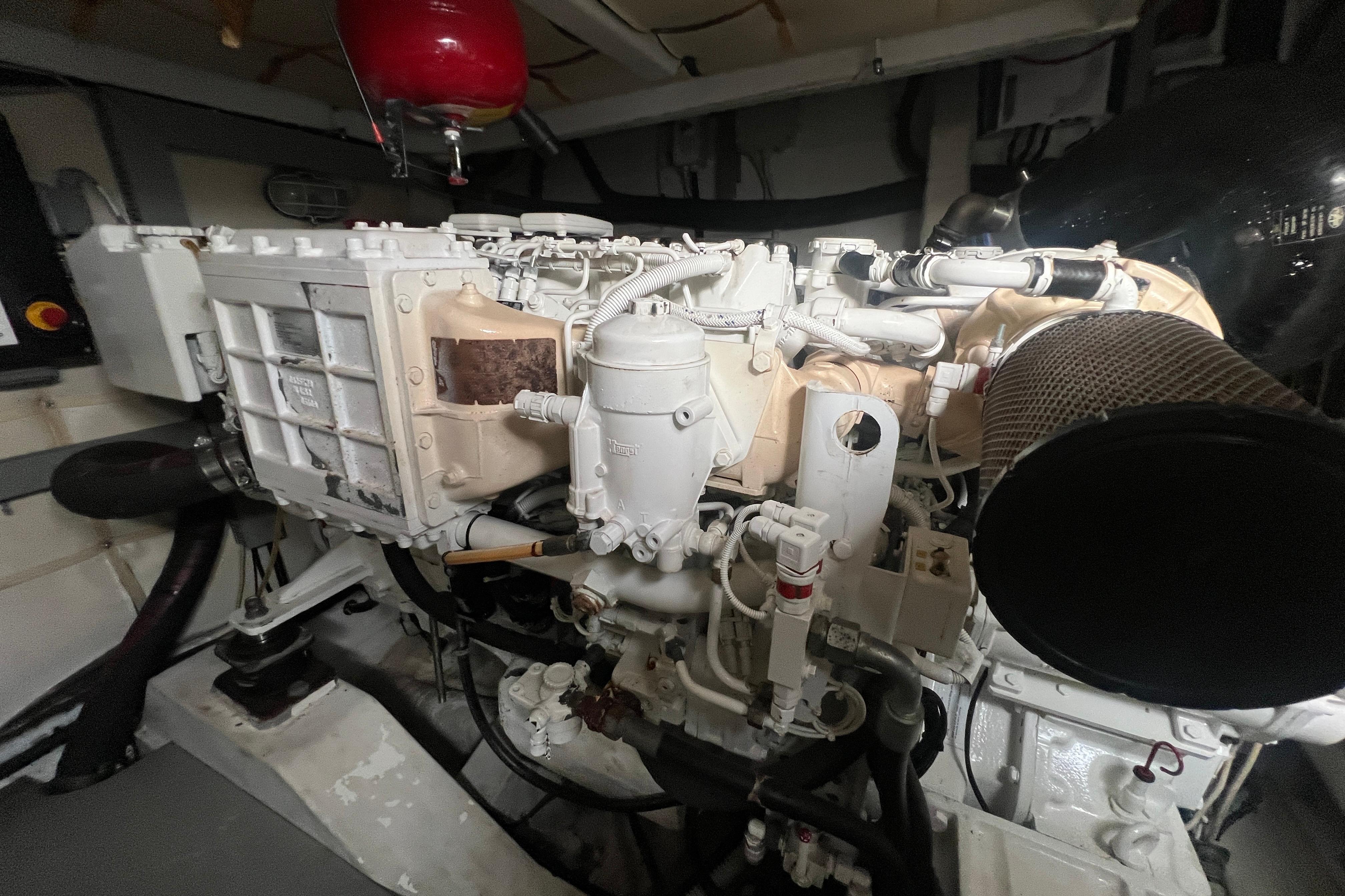 Propulsada por ejes, una configuración poco común en este modelo y muy apreciada por su fiabilidad y facilidad de mantenimiento, está equipada con dos potentes motores MAN de 800 CV cada uno, alcanzando velocidades superiores a los 40 nudos con gran estabilidad y control incluso en condiciones exigentes.