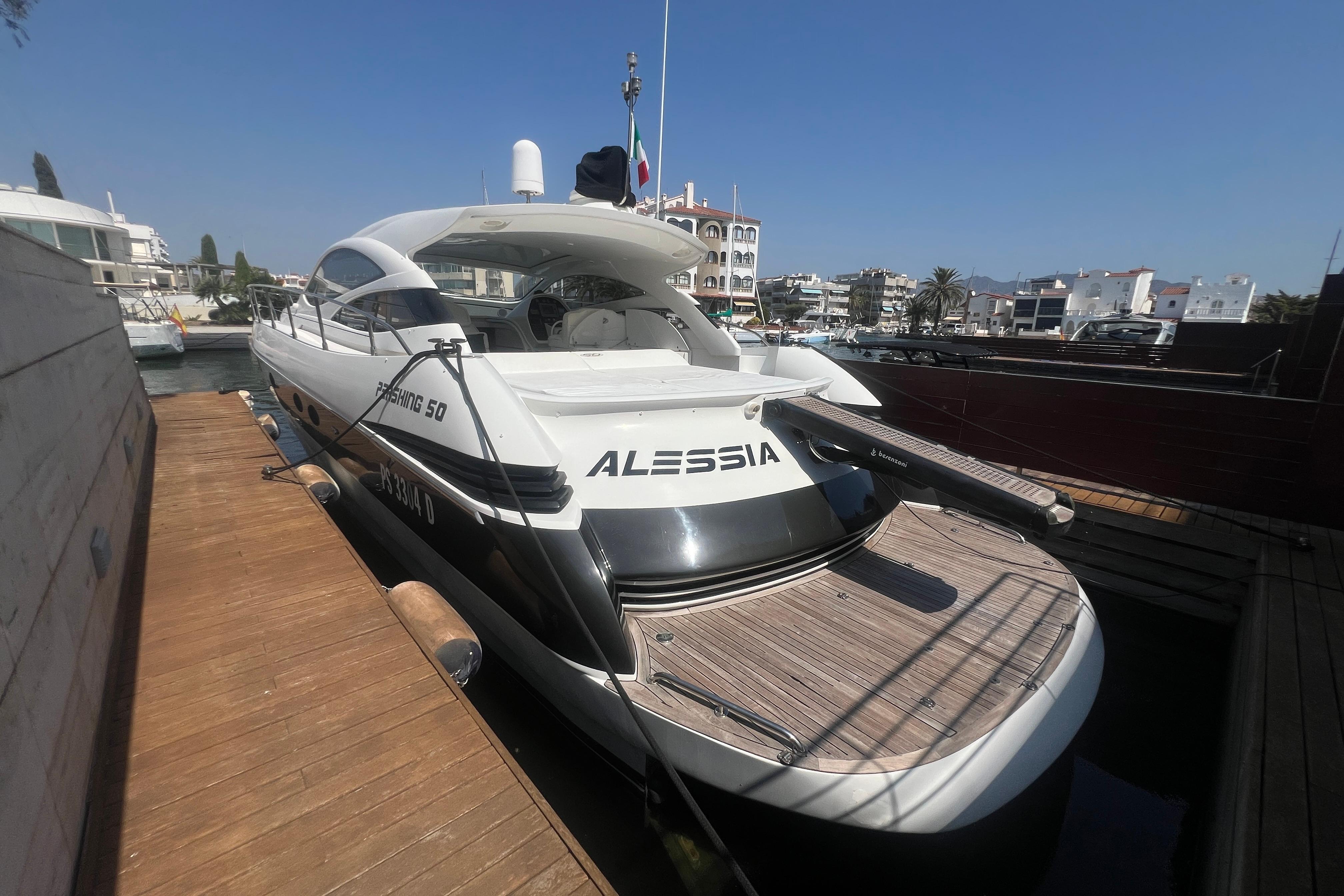 La Pershing 50 de 2007 es un yate a motor de altas prestaciones que combina el inconfundible diseño italiano de Pershing Yachts con una navegación potente y precisa. Con 15,23 metros de eslora y 4,38 metros de manga, ofrece líneas deportivas, interiores lujosos y un excelente aprovechamiento del espacio.